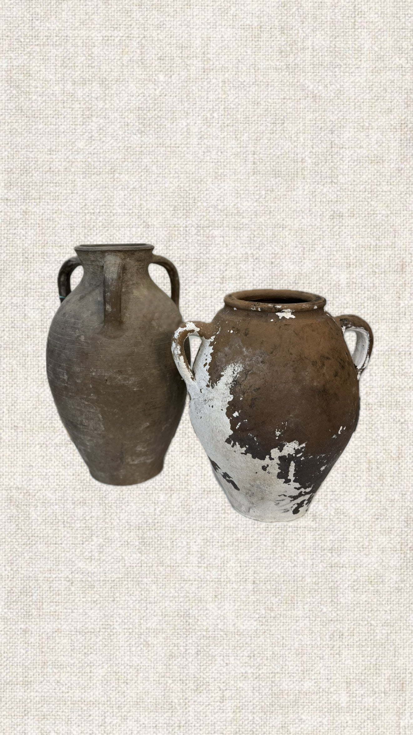 Our time-worn pots celebrate the quiet beauty of age. Whether antique, vintage, or thoughtfully reproduced, each piece carries its own distinctive patina, shaped by years of weathering and use. These vessels are not modernly water-safe, so we recommend placing a smaller vase inside if you wish to display fresh flowers or plants. Expect minor imperfections, subtle marks, wear, and variations as a true testament to their authenticity and timeless character.