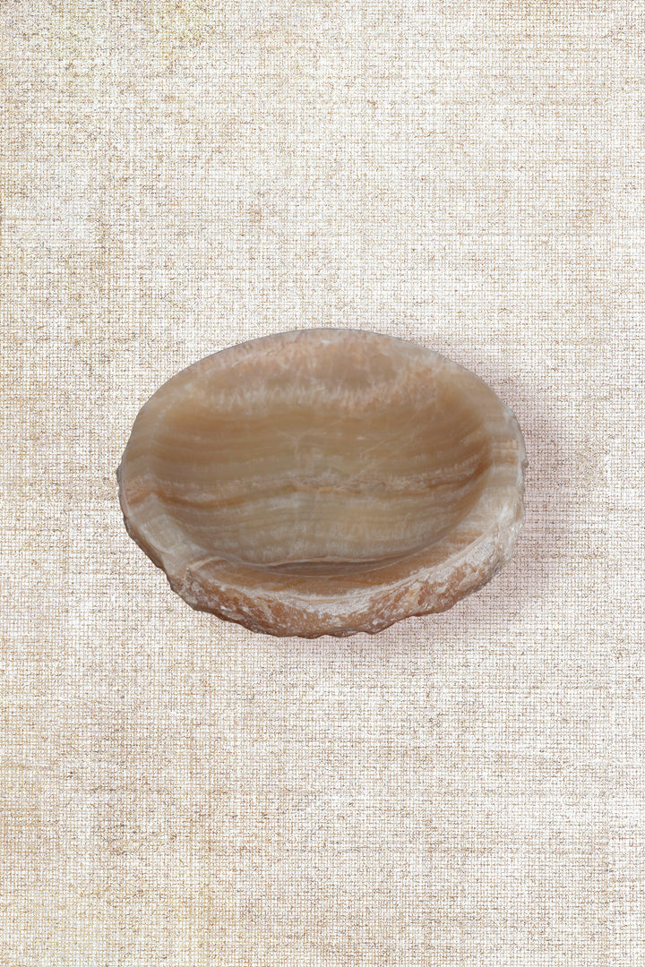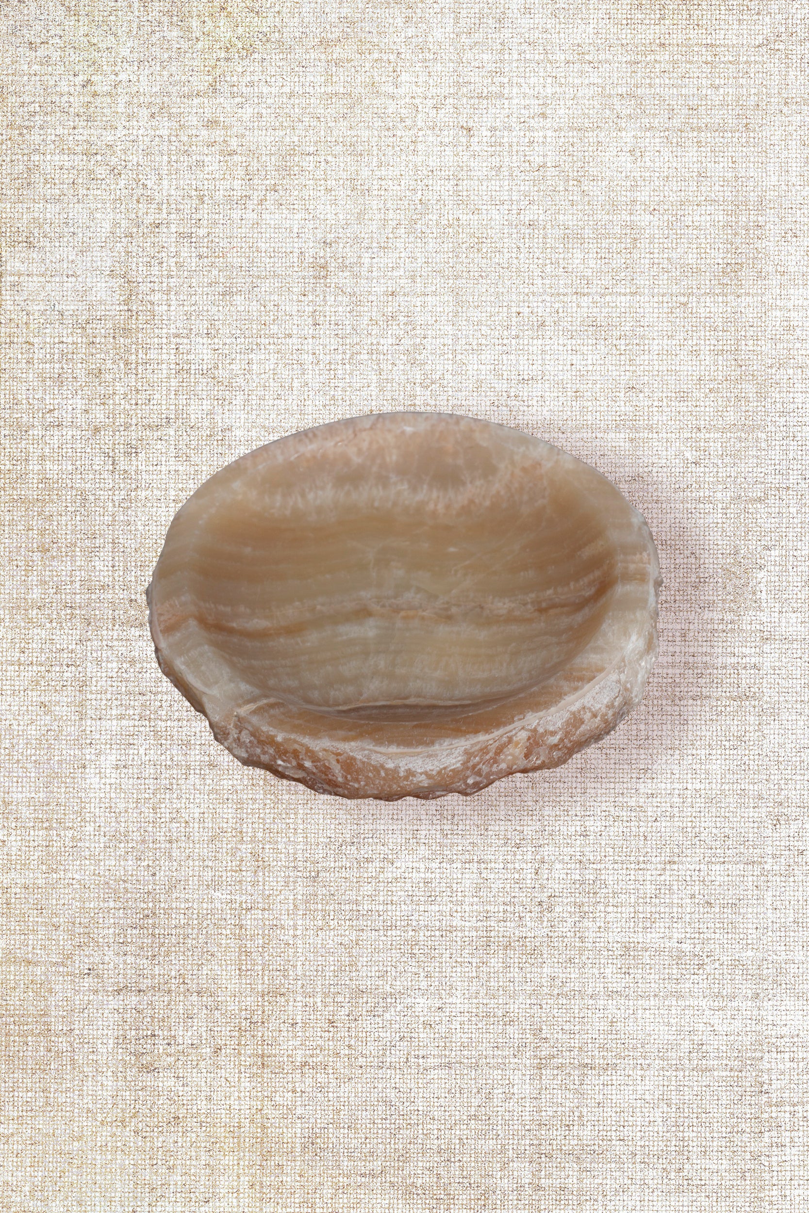 This is a statement decorative item and is highly versatile. This Onyx marvel can be used as a bowl for dry snacks, or decorate your tables, benches, and shelves. To highlight the polished top and raw edges of this bowl, place it on top of your coffee table books. Smoothly paired with any type of interior, leave it to the surrounding light to highlight its natural colors. Brut stands for Raw in French and this represents the spirit & letter of all what this bowl line represents.
