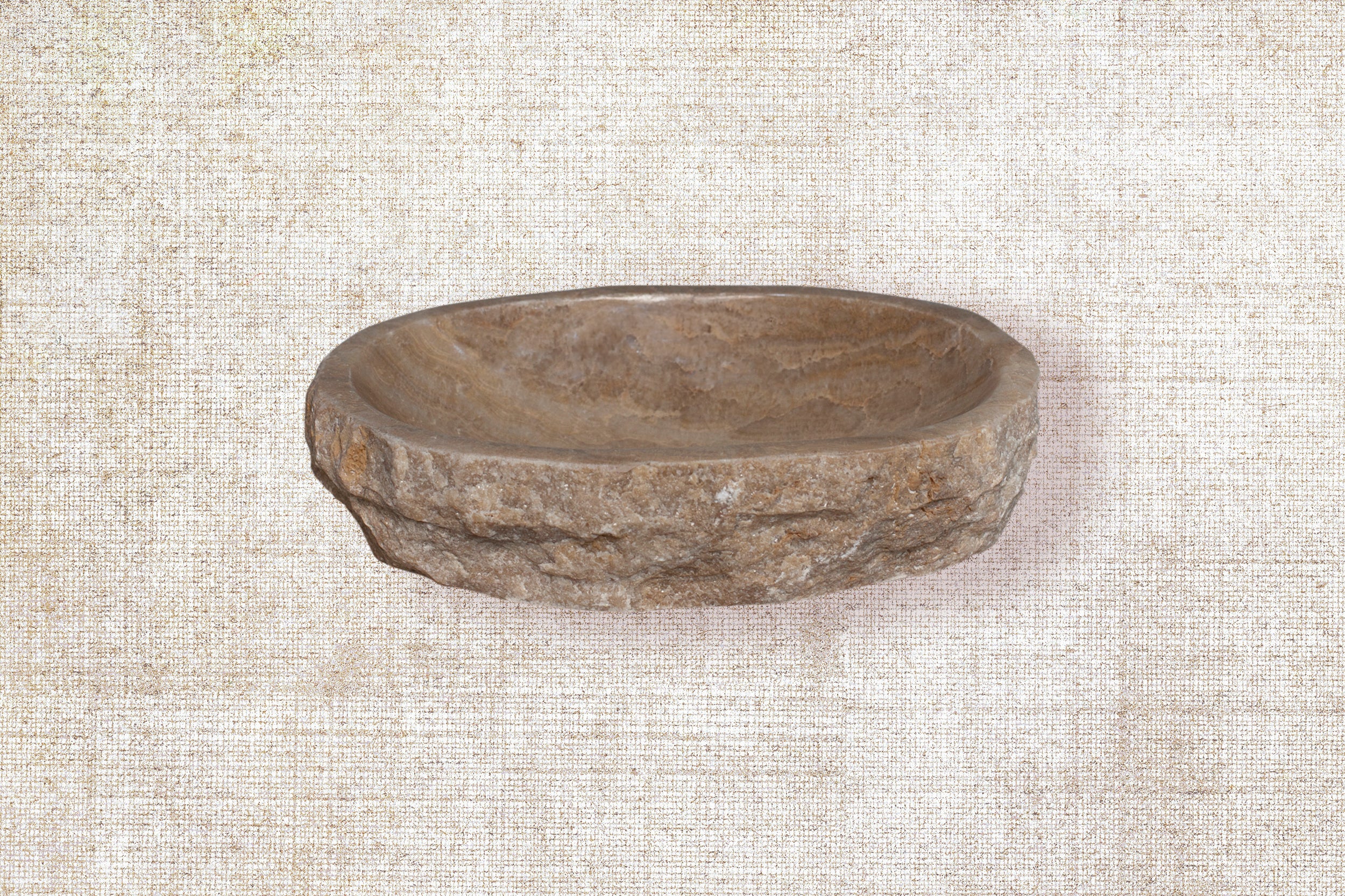 This is a statement decorative item and is highly versatile. This Onyx marvel can be used as a bowl for dry snacks, or decorate your tables, benches, and shelves. To highlight the polished top and raw edges of this bowl, place it on top of your coffee table books. Smoothly paired with any type of interior, leave it to the surrounding light to highlight its natural colors. Brut stands for Raw in French and this represents the spirit & letter of all what this bowl line represents.