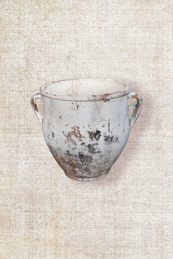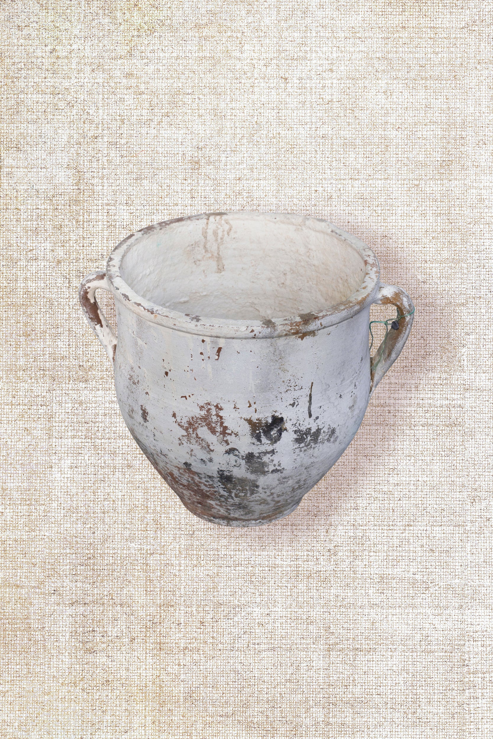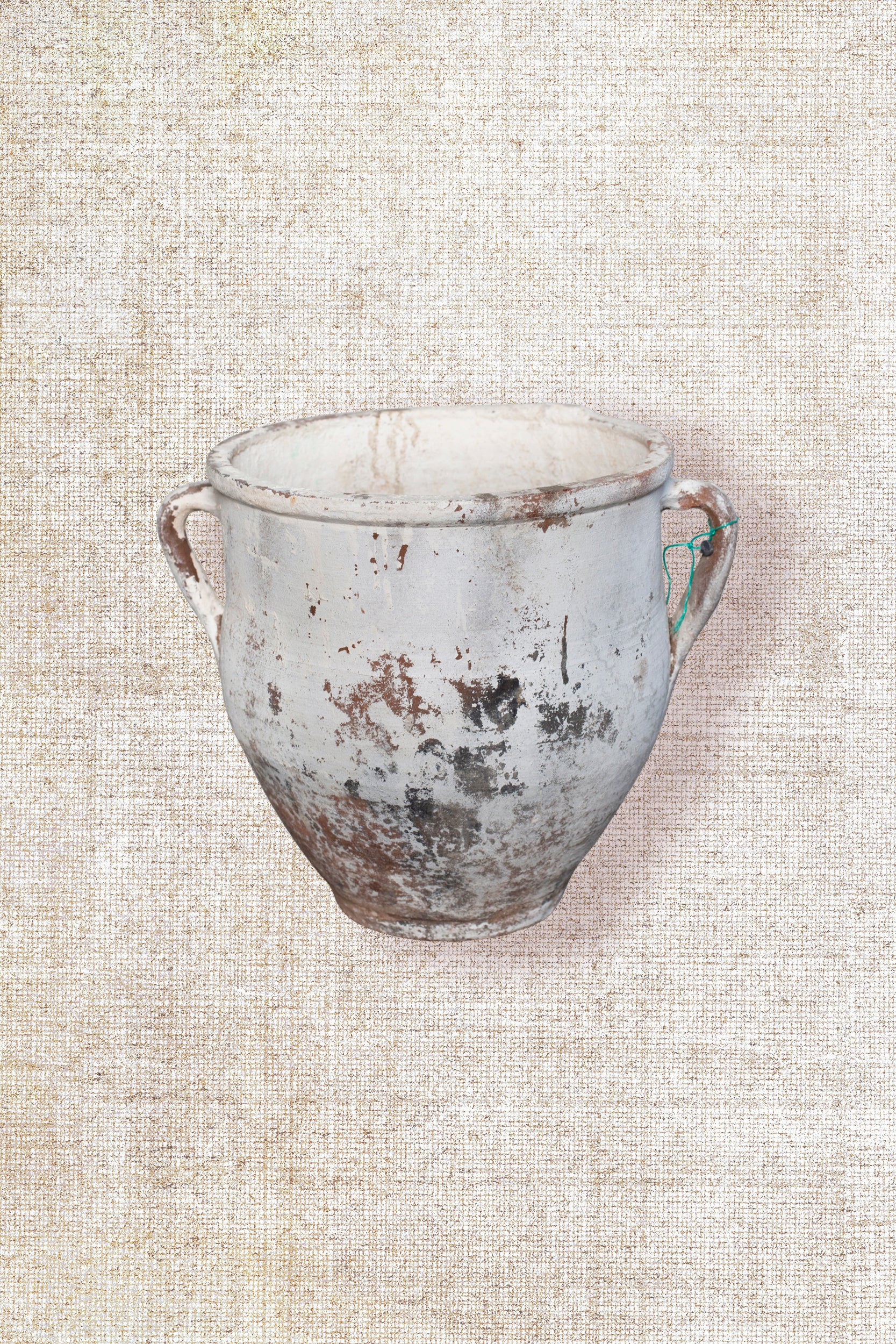 Daggar pots, were historically used to store food. Transformed by the passage of time, this exquisite, one-of-a-kind vessel has evolved into a masterpiece of texture, patina, and history. Its surface, bearing the marks of sediment, paint, and age, tells a story of craftsmanship and artisanal expertise. As a display piece, or when filled with plants or florals, it is a true showstopper, evoking a sense of wonder and awe. Expect minor imperfections as a testament to its authenticity.