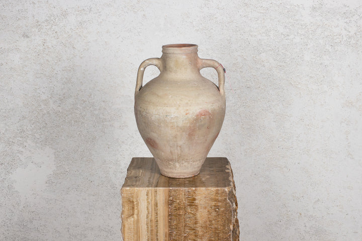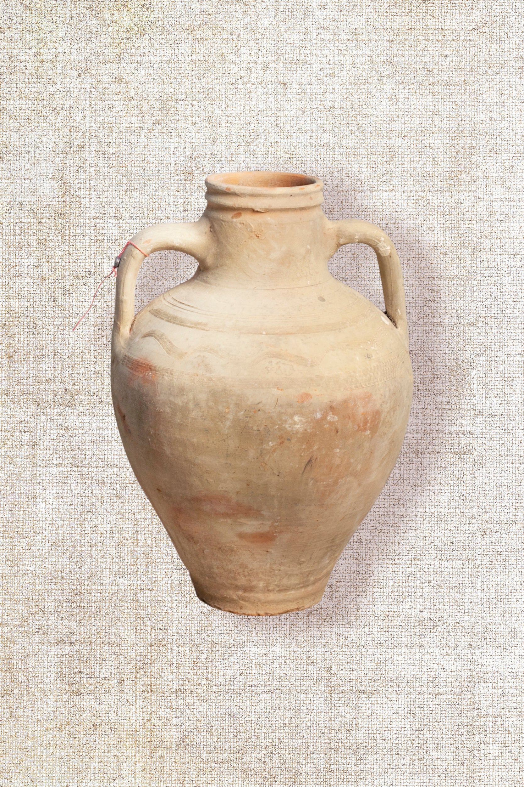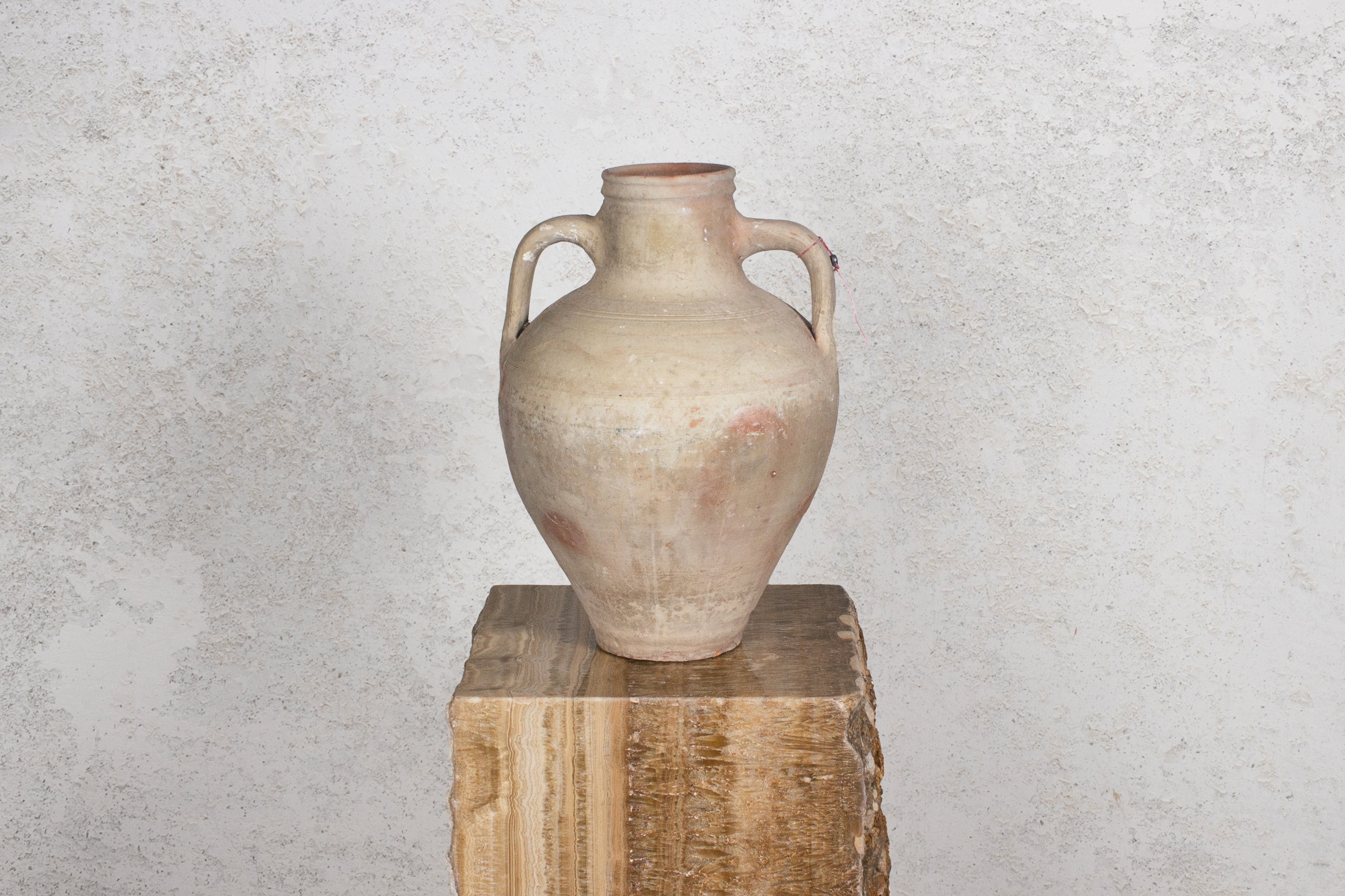 The "Hatay pot" refers to a specific type of pottery that originates from the Hatay Province in Turkey, a region rich in cultural history and diverse influences from various civilizations. The craftsmanship of Hatay pottery is characterized by traditional techniques and distinctive designs. Style it as a centerpiece with dried branches or as a display piece on one of our metal stands or pedestals. Displaying Hatay pots of varying sizes and elevations in any chosen space is a wonderful way to create an organic and elevated aesthetic. The unique, statuesque silhouettes of these pots not only serve as beautiful decorative elements but also contribute to a sense of depth and dimension in your interior design. Expect minor imperfections as a testament to its authenticity.