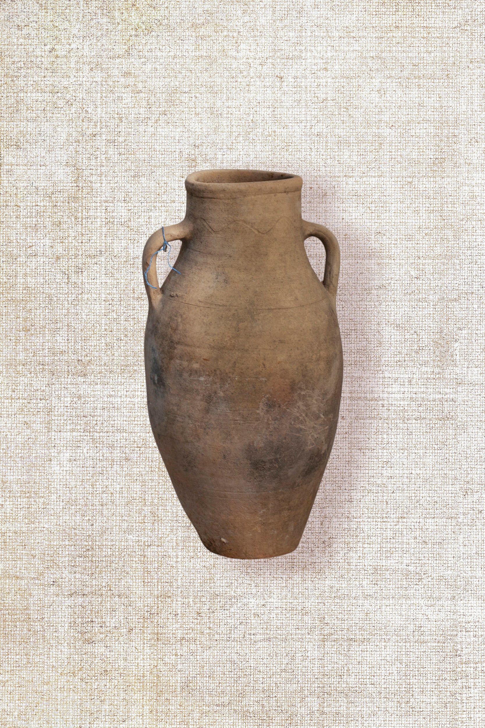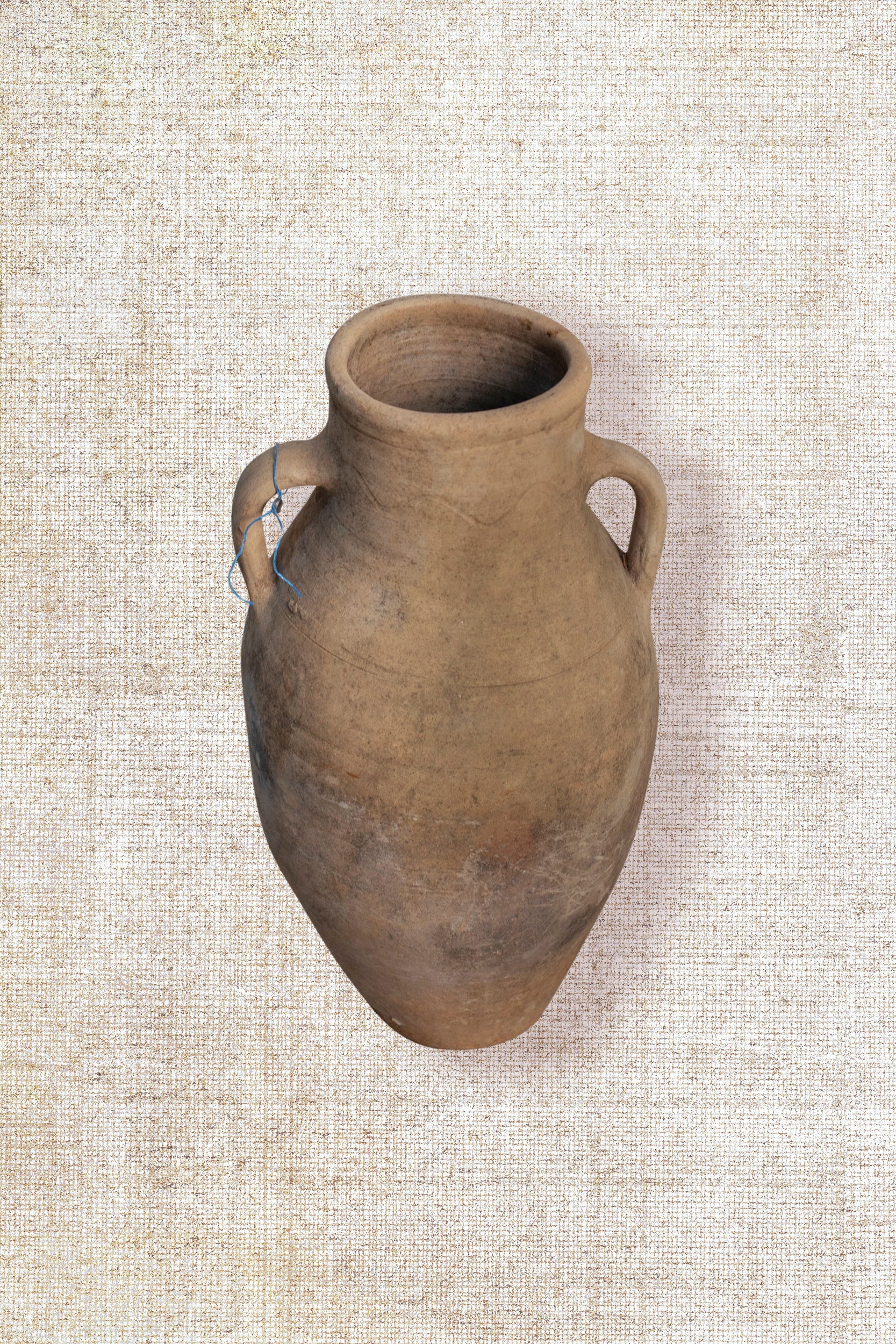 The "Hatay pot" refers to a specific type of pottery that originates from the Hatay Province in Turkey, a region rich in cultural history and diverse influences from various civilizations. The craftsmanship of Hatay pottery is characterized by traditional techniques and distinctive designs. Style it as a display piece on one of our metal stands or pedestals. Displaying Hatay pots of varying sizes and elevations in any chosen space is a wonderful way to create an organic and elevated aesthetic. The unique, statuesque silhouettes of these pots not only serve as beautiful decorative elements but also contribute to a sense of depth and dimension in your interior design. Incorporating a Hatay pot into your decor not only adds a touch of history and artistry but also brings a piece of heritage into your home, enriching the ambiance with its rustic elegance. Expect minor imperfections as a testament to its authenticity.