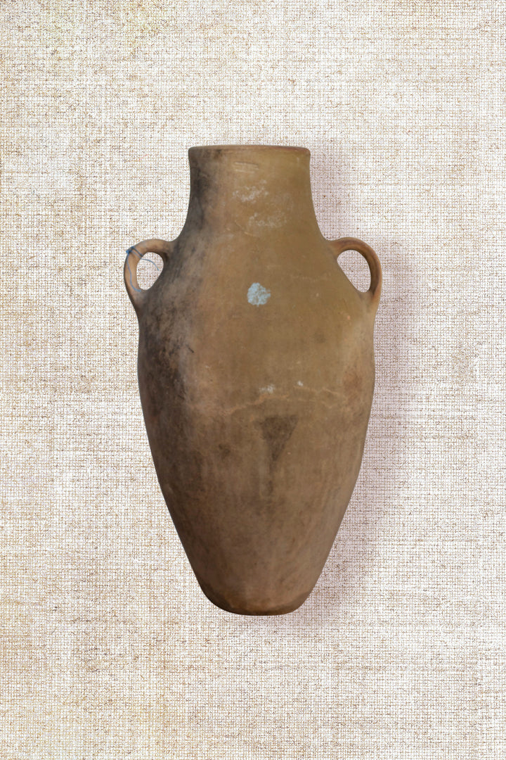 The "Hatay pot" refers to a specific type of pottery that originates from the Hatay Province in Turkey, a region rich in cultural history and diverse influences from various civilizations. The craftsmanship of Hatay pottery is characterized by traditional techniques and distinctive designs. Style it as a display piece on one of our metal stands or pedestals. Displaying Hatay pots of varying sizes and elevations in any chosen space is a wonderful way to create an organic and elevated aesthetic. The unique, statuesque silhouettes of these pots not only serve as beautiful decorative elements but also contribute to a sense of depth and dimension in your interior design. Incorporating a Hatay pot into your decor not only adds a touch of history and artistry but also brings a piece of heritage into your home, enriching the ambiance with its rustic elegance. Expect minor imperfections as a testament to its authenticity.
