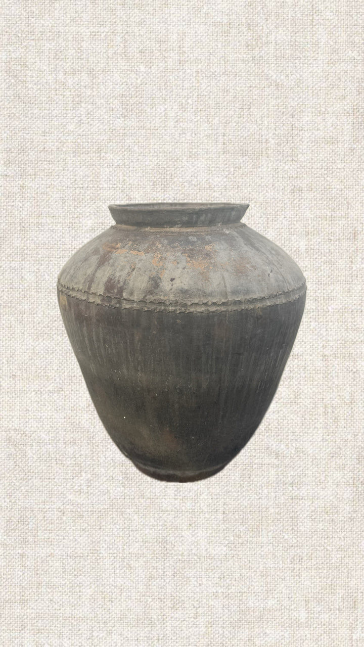 These vintage pots, once used to store water, are a testament to both utility and craftsmanship. Over time, they’ve developed a rich, weathered patina, each one showcasing its unique history. The coloration varies slightly, but gives each pot an individual character, reflecting a blend of nature’s influence and the craftsmanship that once shaped them. Each one feels like a snapshot of a bygone era, its scars and markings adding depth and richness to its story. Style these pots by placing them on a pedestal, side table, or entrance table to elevate their presence. For the finishing touch, fill the pots with either natural or artificial stems. These pots serve as well as planters for living plants.