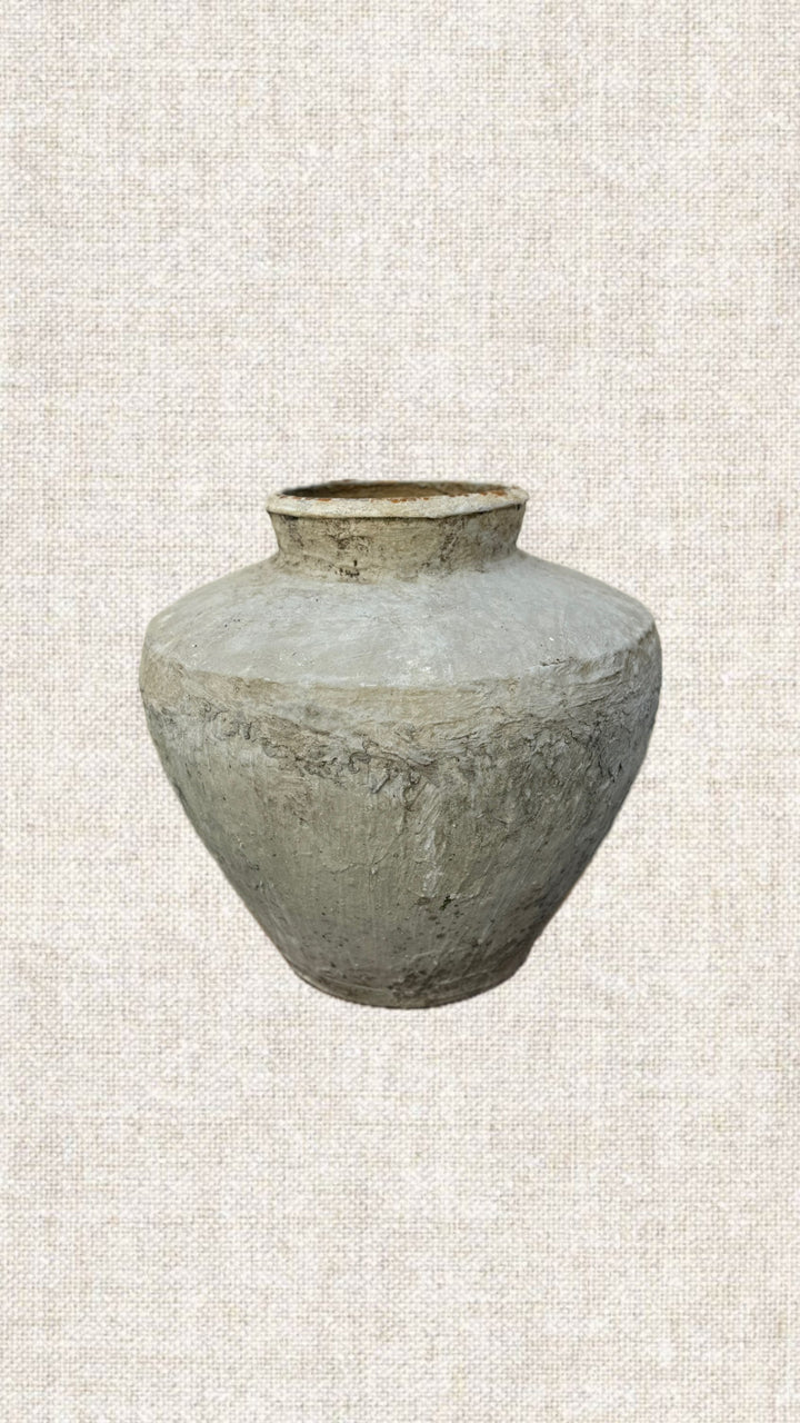 These vintage pots, once used to store water, are a testament to both utility and craftsmanship. Over time, they’ve developed a rich, weathered patina, each one showcasing its unique history. The coloration varies slightly, but gives each pot an individual character, reflecting a blend of nature’s influence and the craftsmanship that once shaped them. Each one feels like a snapshot of a bygone era, its scars and markings adding depth and richness to its story. Style these pots by placing them on a pedestal, side table, or entrance table to elevate their presence. For the finishing touch, fill the pots with either natural or artificial stems. These pots serve as well as planters for living plants.