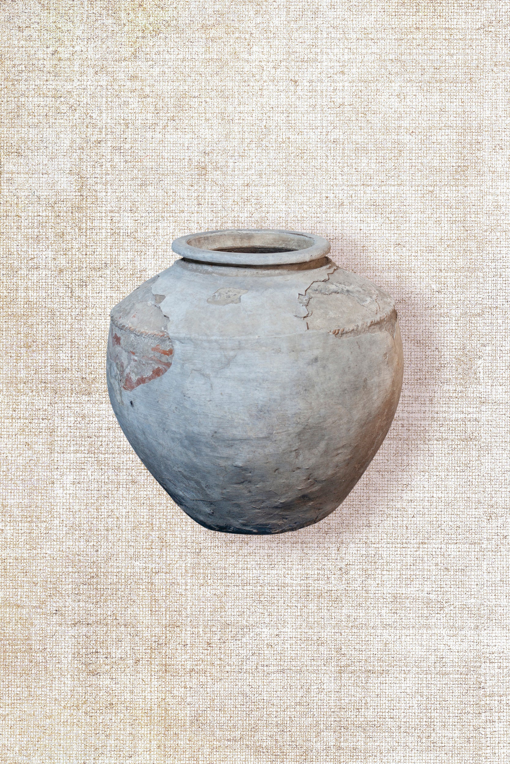 These vintage pots, once used to store water, are a testament to both utility and craftsmanship. Over time, they’ve developed a rich, weathered patina, each one showcasing its unique history. The coloration varies slightly, but gives each pot an individual character, reflecting a blend of nature’s influence and the craftsmanship that once shaped them. Each one feels like a snapshot of a bygone era, its scars and markings adding depth and richness to its story. Style these pots by placing them on a pedestal, side table, or entrance table to elevate their presence. For the finishing touch, fill the pots with either natural or artificial stems. These pots serve as well as planters for living plants.