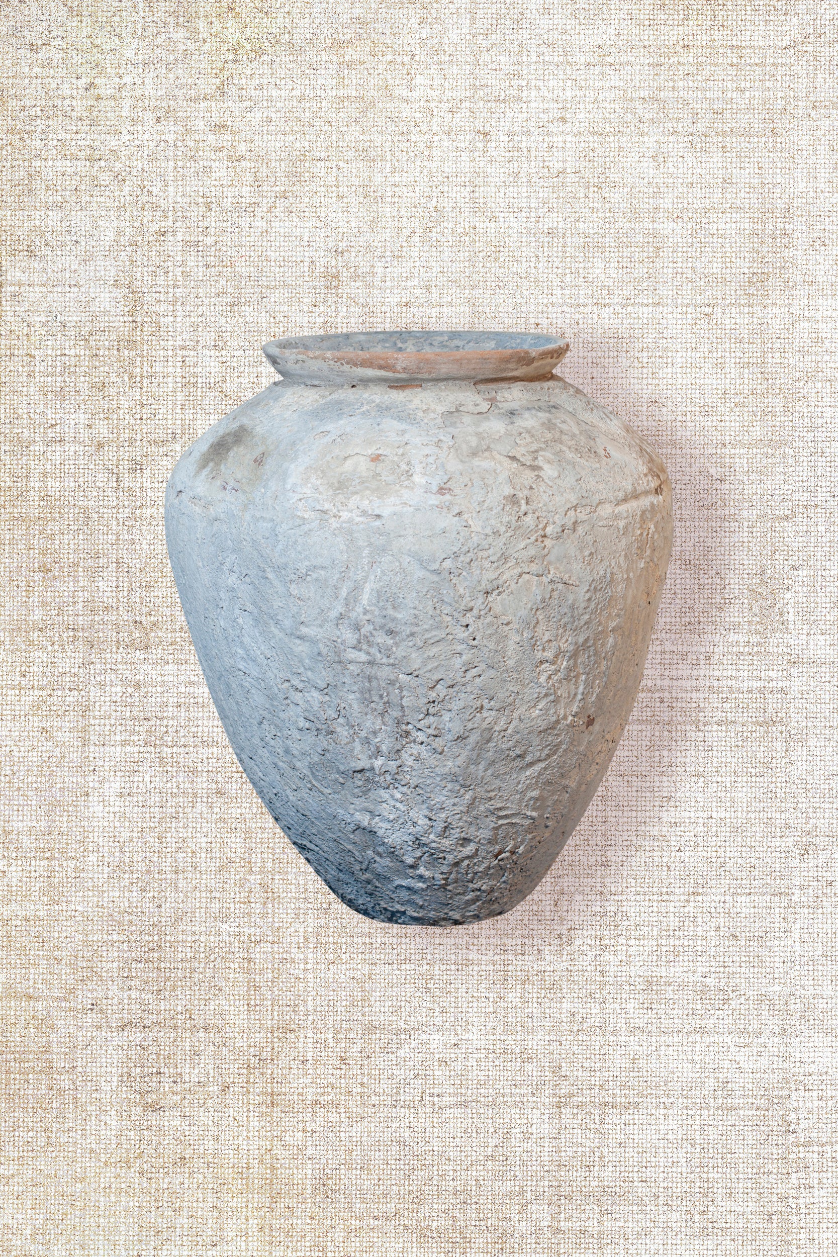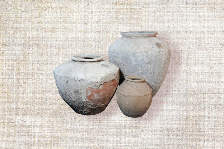 These vintage pots, once used to store water, are a testament to both utility and craftsmanship. Over time, they’ve developed a rich, weathered patina, each one showcasing its unique history. The coloration varies slightly, but gives each pot an individual character, reflecting a blend of nature’s influence and the craftsmanship that once shaped them. Each one feels like a snapshot of a bygone era, its scars and markings adding depth and richness to its story. Style these pots by placing them on a pedestal, side table, or entrance table to elevate their presence. For the finishing touch, fill the pots with either natural or artificial stems. These pots serve as well as planters for living plants.