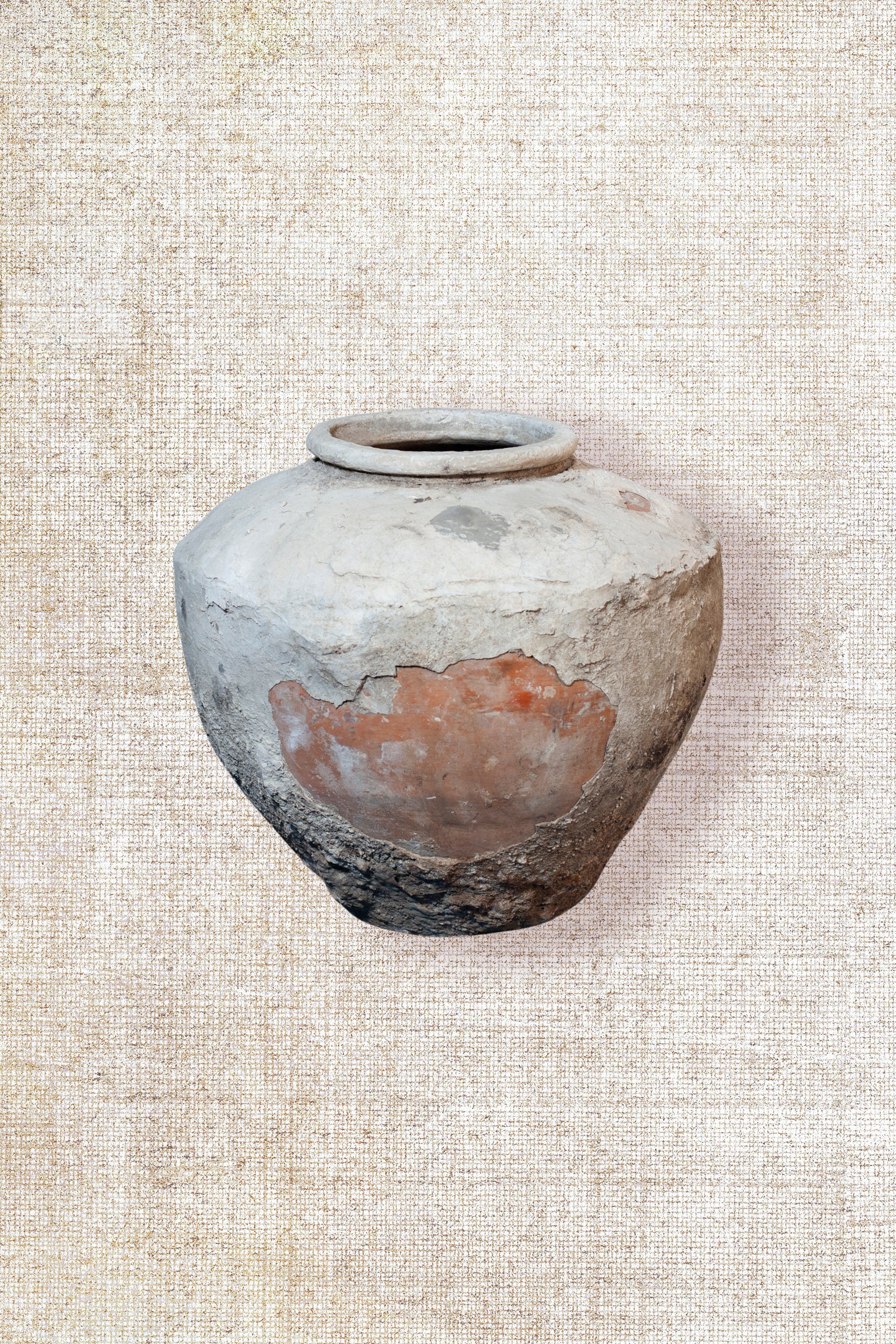 These vintage pots, once used to store water, are a testament to both utility and craftsmanship. Over time, they’ve developed a rich, weathered patina, each one showcasing its unique history. The coloration varies slightly, but gives each pot an individual character, reflecting a blend of nature’s influence and the craftsmanship that once shaped them. Each one feels like a snapshot of a bygone era, its scars and markings adding depth and richness to its story. Style these pots by placing them on a pedestal, side table, or entrance table to elevate their presence. For the finishing touch, fill the pots with either natural or artificial stems. These pots serve as well as planters for living plants.