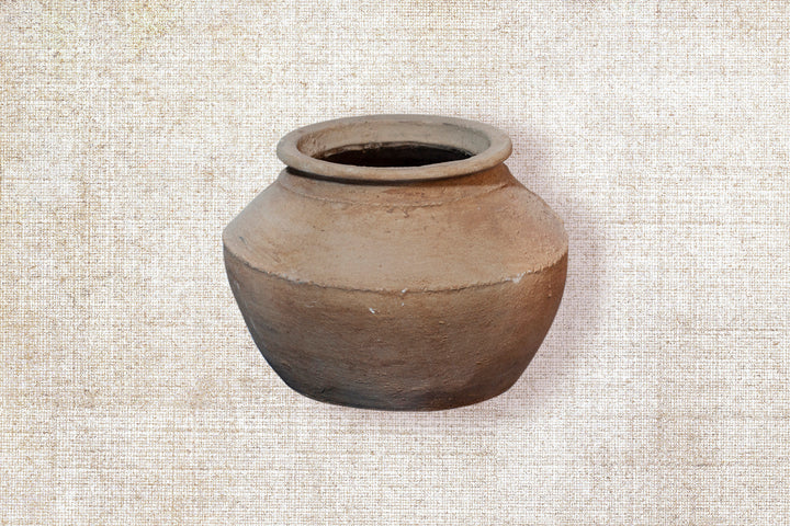 These vintage pots, once used to store water, are a testament to both utility and craftsmanship. Over time, they’ve developed a rich, weathered patina, each one showcasing its unique history. The coloration varies slightly, but gives each pot an individual character, reflecting a blend of nature’s influence and the craftsmanship that once shaped them. Each one feels like a snapshot of a bygone era, its scars and markings adding depth and richness to its story. Style these pots by placing them on a pedestal, side table, or entrance table to elevate their presence. For the finishing touch, fill the pots with either natural or artificial stems. These pots serve as well as planters for living plants.