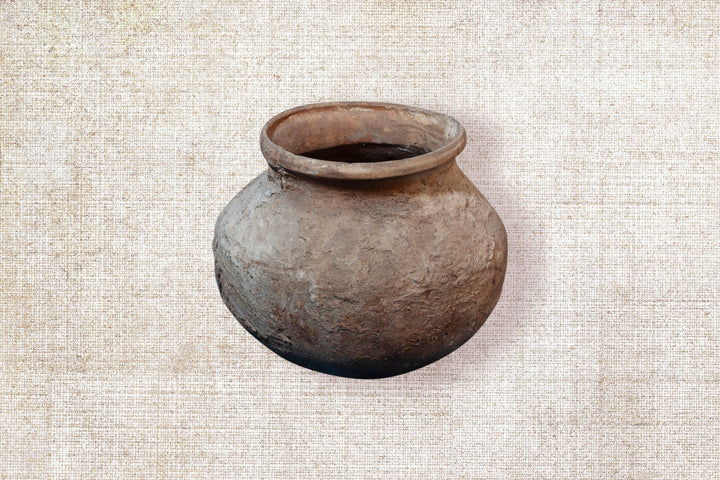 These vintage pots, once used to store water, are a testament to both utility and craftsmanship. Over time, they’ve developed a rich, weathered patina, each one showcasing its unique history. The coloration varies slightly, but gives each pot an individual character, reflecting a blend of nature’s influence and the craftsmanship that once shaped them. Each one feels like a snapshot of a bygone era, its scars and markings adding depth and richness to its story. Style these pots by placing them on a pedestal, side table, or entrance table to elevate their presence. For the finishing touch, fill the pots with either natural or artificial stems. These pots serve as well as planters for living plants.