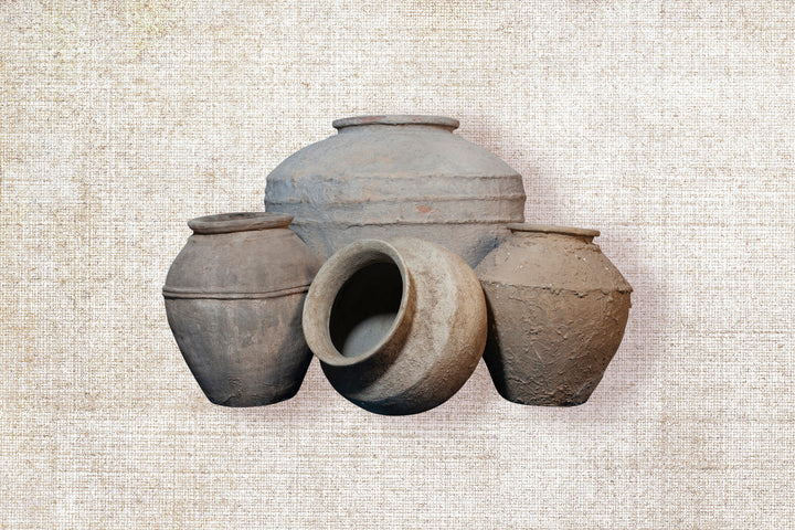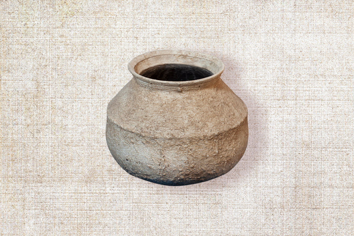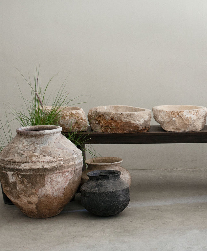 These vintage pots, once used to store water, are a testament to both utility and craftsmanship. Over time, they’ve developed a rich, weathered patina, each one showcasing its unique history. The coloration varies slightly, but gives each pot an individual character, reflecting a blend of nature’s influence and the craftsmanship that once shaped them. Each one feels like a snapshot of a bygone era, its scars and markings adding depth and richness to its story. Style these pots by placing them on a pedestal, side table, or entrance table to elevate their presence. For the finishing touch, fill the pots with either natural or artificial stems. These pots serve as well as planters for living plants