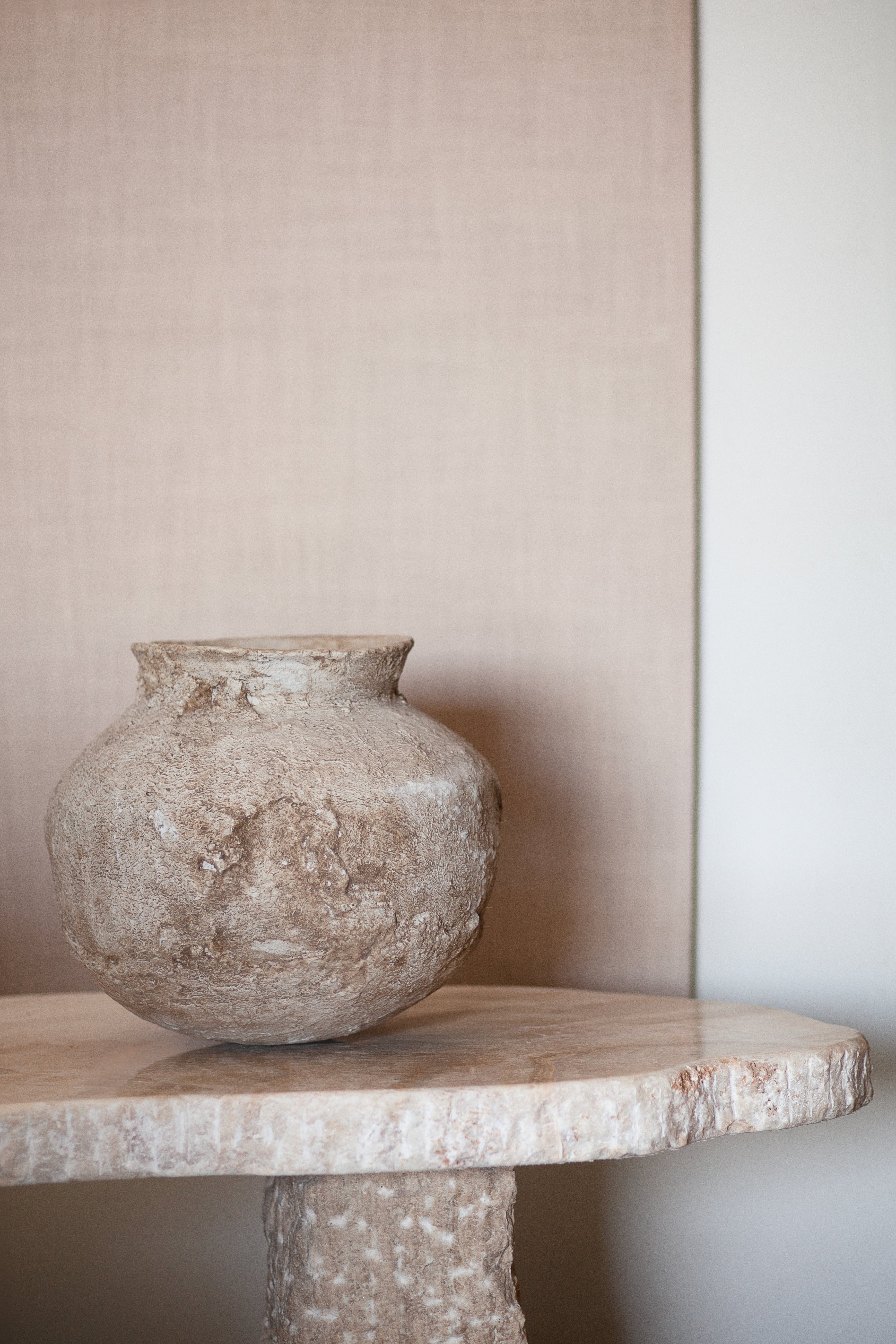 These vintage pots, once used to store water, are a testament to both utility and craftsmanship. Over time, they’ve developed a rich, weathered patina, each one showcasing its unique history. The coloration varies slightly, but gives each pot an individual character, reflecting a blend of nature’s influence and the craftsmanship that once shaped them. Each one feels like a snapshot of a bygone era, its scars and markings adding depth and richness to its story. Style these pots by placing them on a pedestal, side table, or entrance table to elevate their presence. For the finishing touch, fill the pots with either natural or artificial stems. These pots serve as well as planters for living plants.