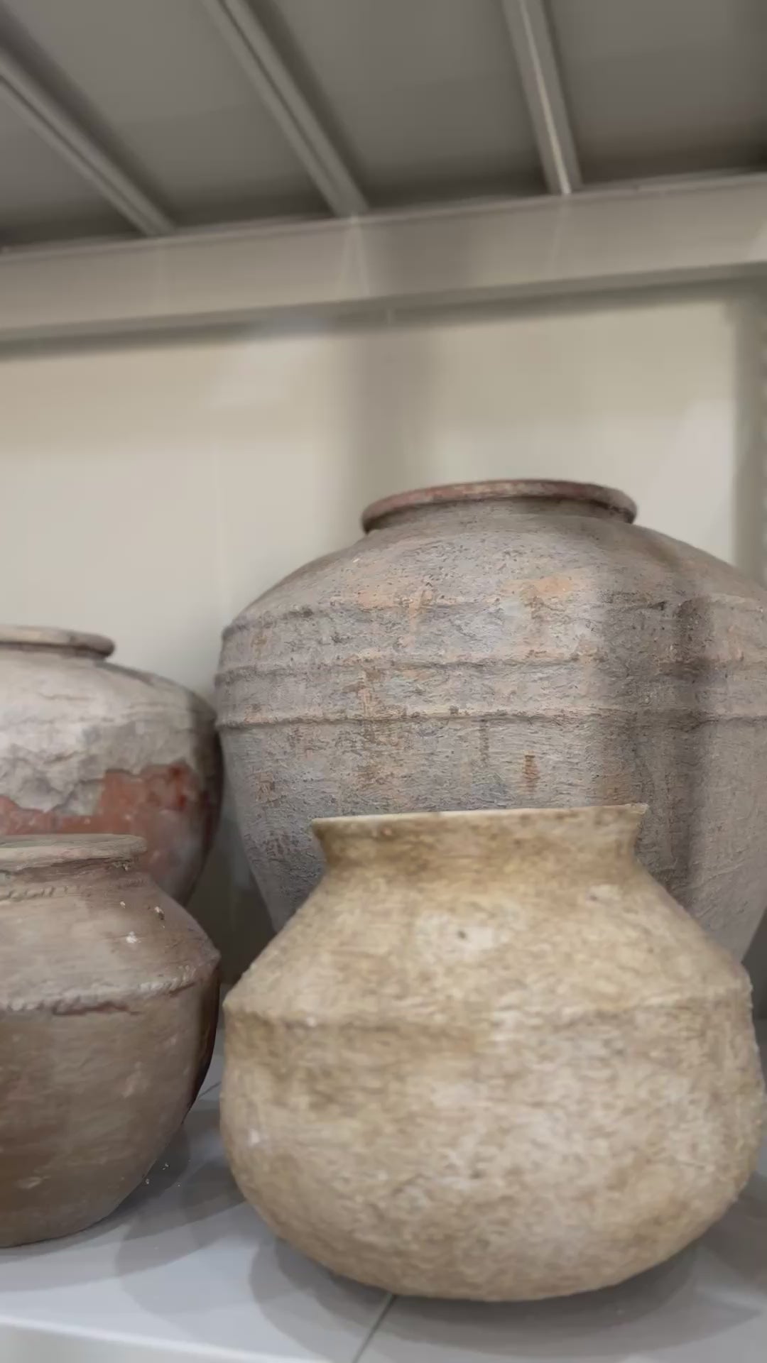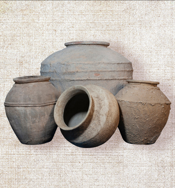 These vintage pots, once used to store water, are a testament to both utility and craftsmanship. Over time, they’ve developed a rich, weathered patina, each one showcasing its unique history. The coloration varies slightly, but gives each pot an individual character, reflecting a blend of nature’s influence and the craftsmanship that once shaped them. Each one feels like a snapshot of a bygone era, its scars and markings adding depth and richness to its story. Style these pots by placing them on a pedestal, side table, or entrance table to elevate their presence. For the finishing touch, fill the pots with either natural or artificial stems. These pots serve as well as planters for living plants