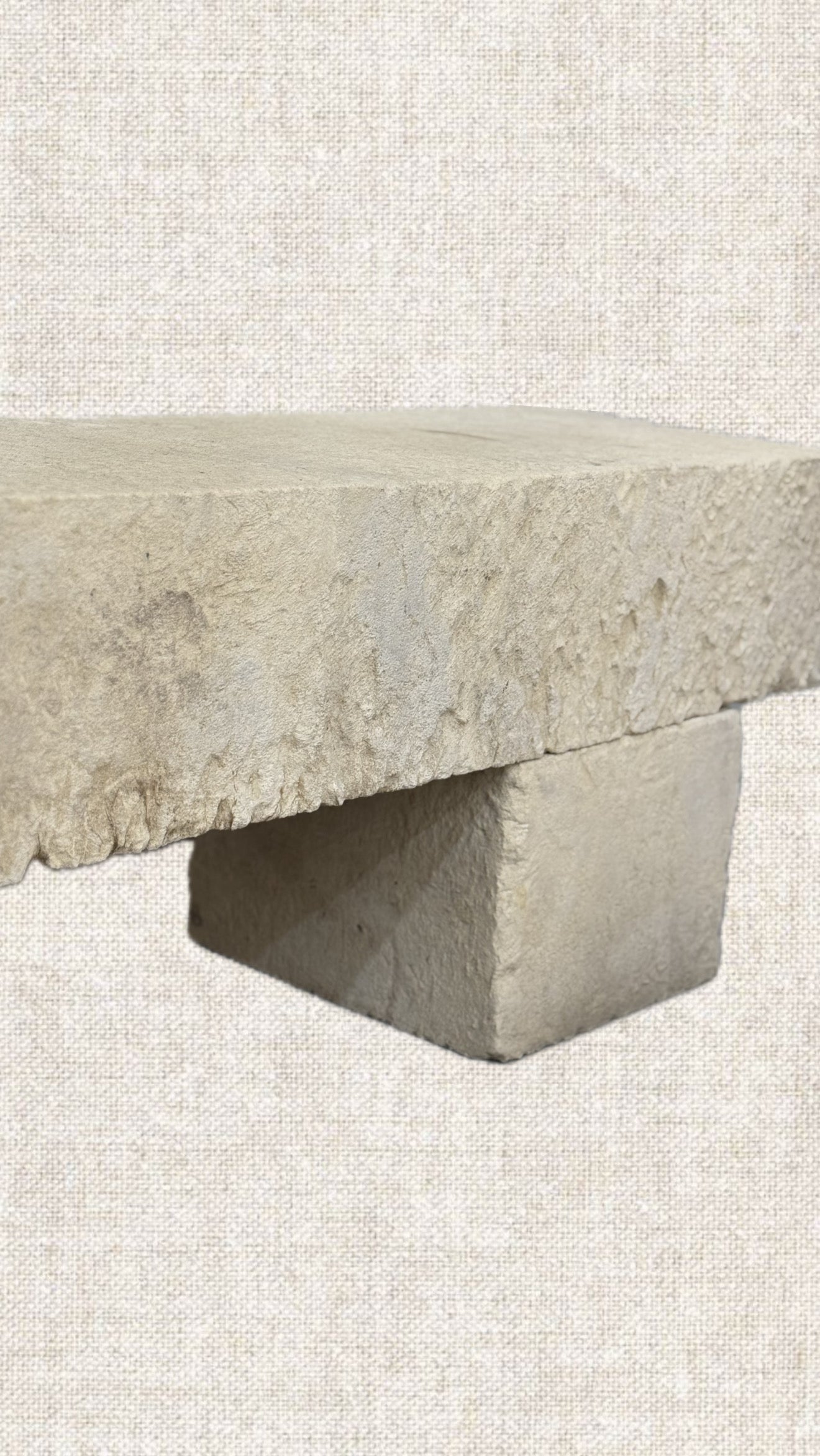 Our handcrafted limestone bench embodies the beauty of raw simplicity and wabi-sabi charm. Sculpted from natural stone, it carries an organic texture and timeless warmth. Perfect for both indoor and outdoor spaces. Whether placed by an entryway styled with a table lamp and pots or used as serene seating, this bench stands as a true statement piece: enduring in character and crafted to be cherished for generations.