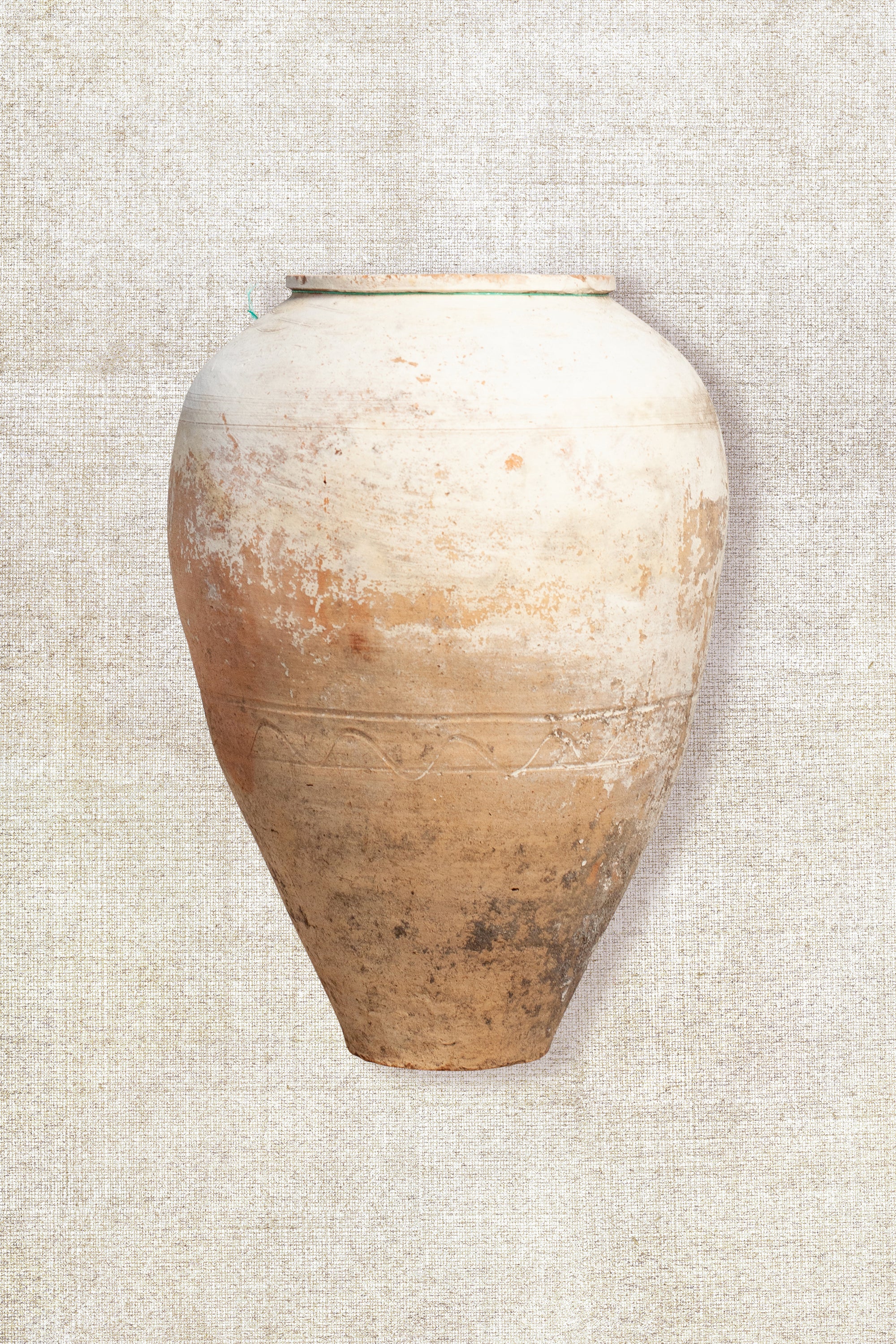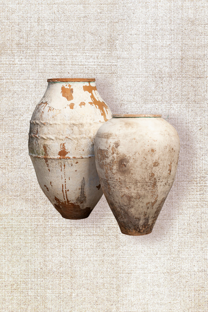Once crafted for the purpose of holding olive oil, each piece boasts a unique character, having gracefully endured the passage of time. Celebrated as a stunning display item, style it by adding some stems or flowers and place it as a statement piece on a pedestal, entrance table, side cabinet or console table or position it as a focal point to bring life to your interior and soften the whole look and feel. This extraordinary object transforms any space into a gallery of history and artistry. Expect minor imperfections as a testament to its authenticity.