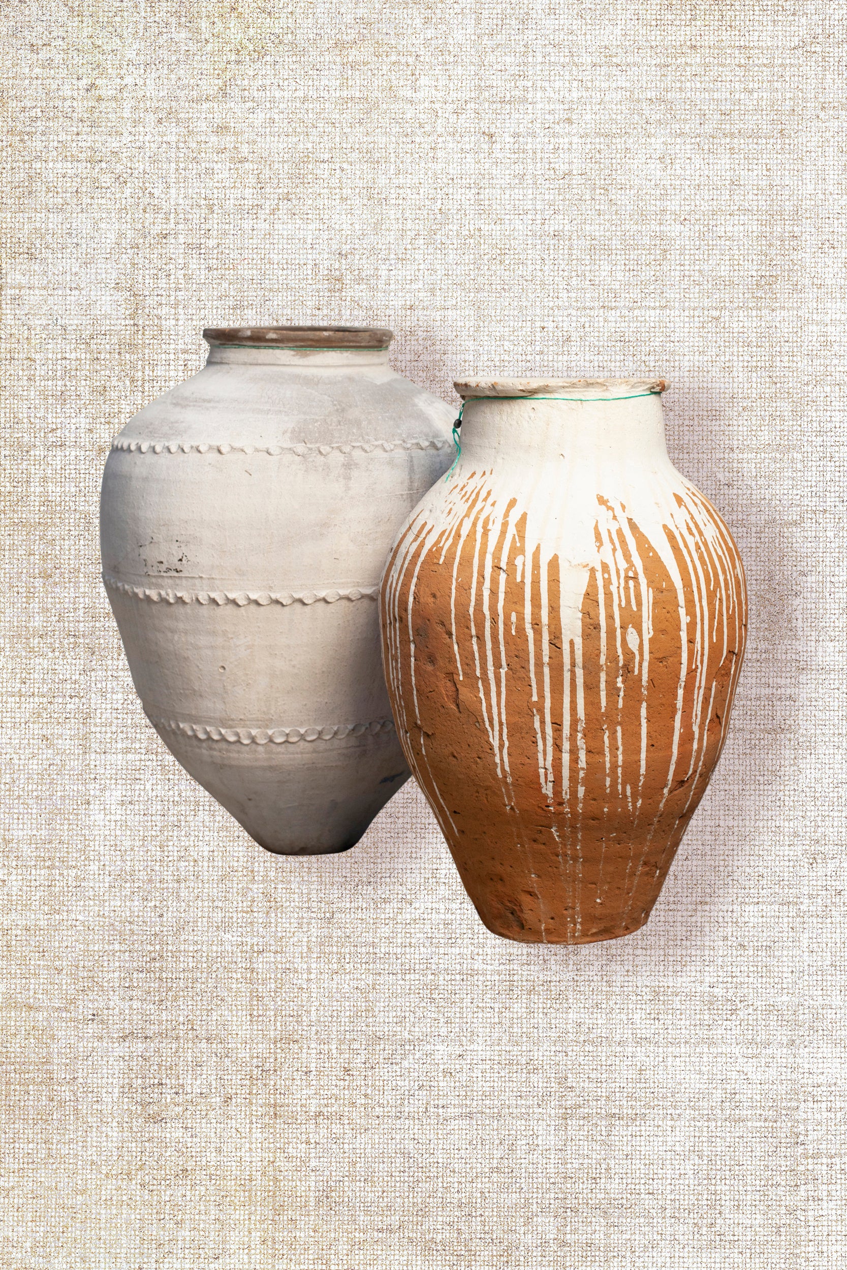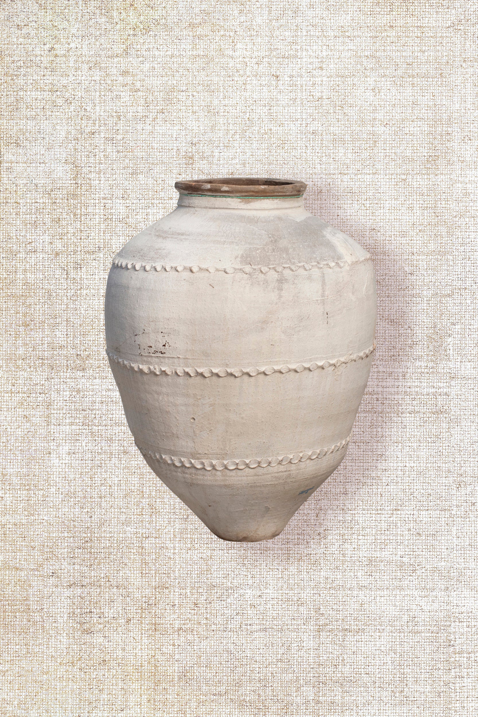 Once crafted for the purpose of holding olive oil, each piece boasts a unique character, having gracefully endured the passage of time. Celebrated as a stunning display item, style it by adding some stems or flowers and place it as a statement piece on a pedestal, entrance table, side cabinet or console table or position it as a focal point to bring life to your interior and soften the whole look and feel. This extraordinary object transforms any space into a gallery of history and artistry. Expect minor imperfections as a testament to its authenticity.