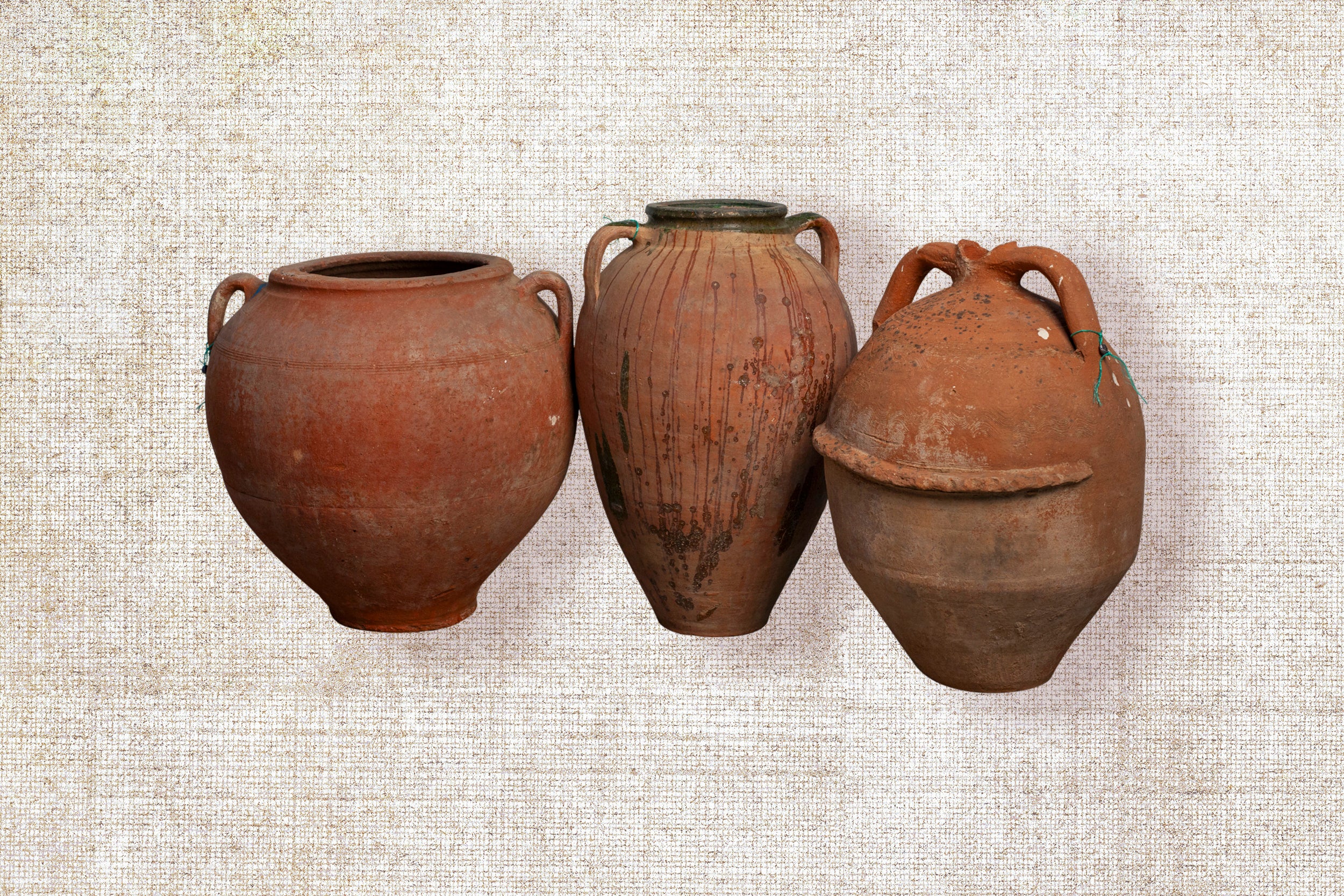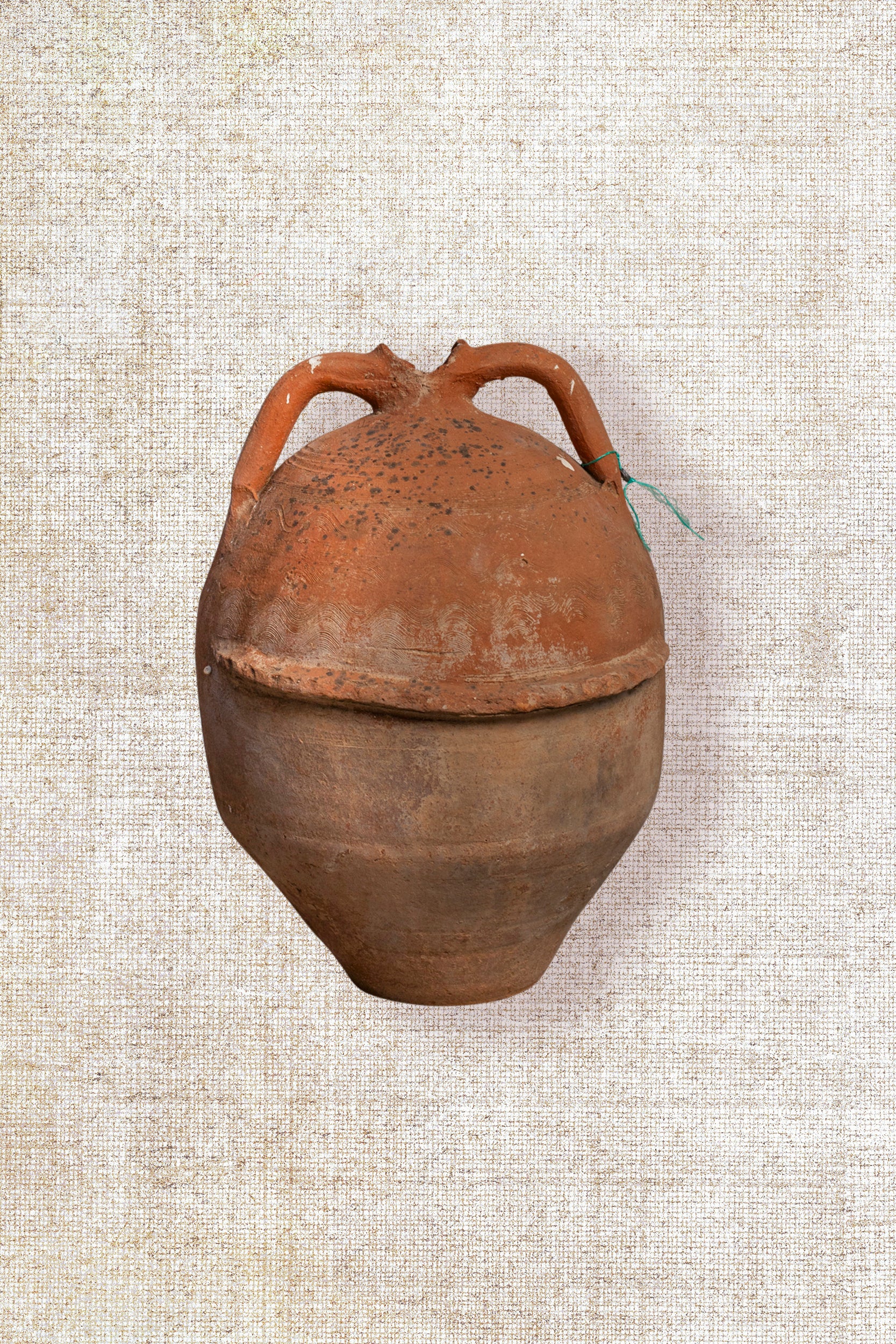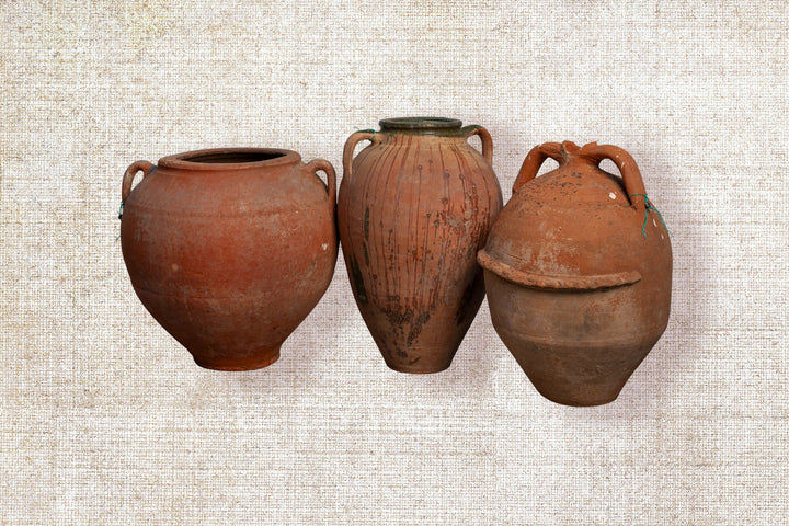 Once crafted for the purpose of holding olive oil, each piece boasts a unique character, having gracefully endured the passage of time. Celebrated as a stunning display item, style it by adding some stems or flowers and place it as a statement piece on a pedestal, entrance table, side cabinet or console table or position it as a focal point to bring life to your interior and soften the whole look and feel. This extraordinary object transforms any space into a gallery of history and artistry. Expect minor imperfections as a testament to its authenticity.