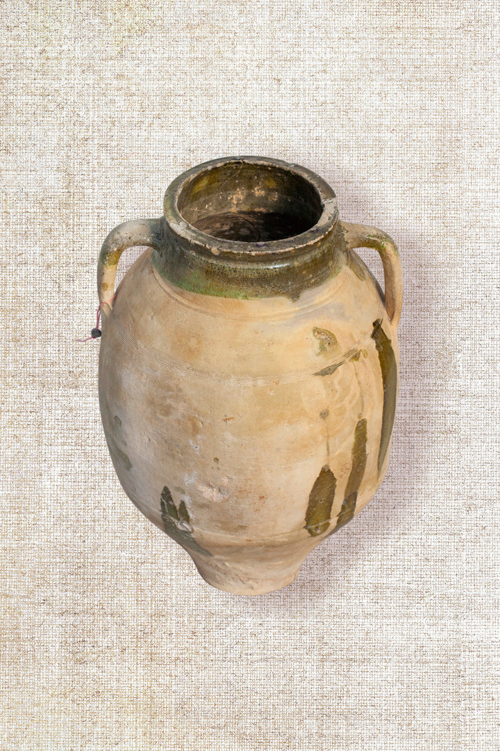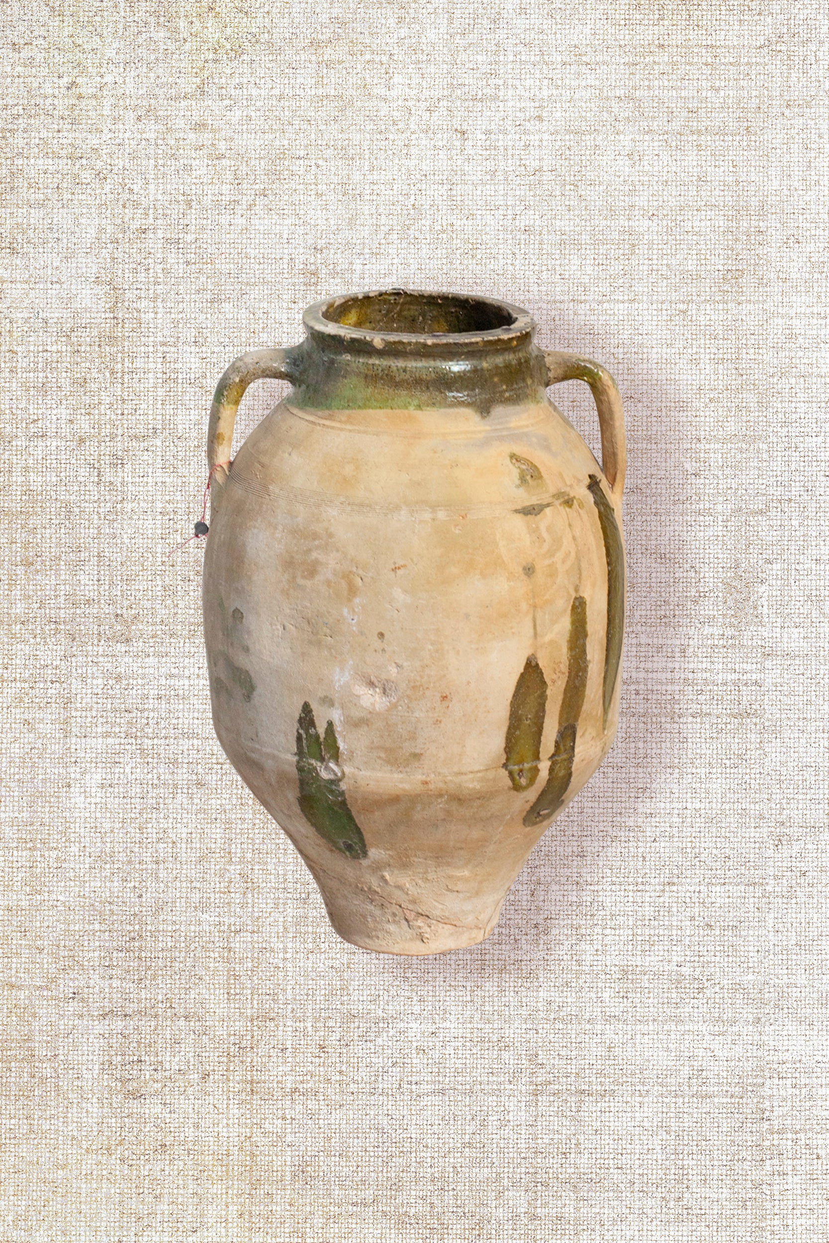 Traditionally crafted for the purpose of holding olive oil, each piece boasts a unique character. Celebrated as a stunning display item, style it by adding some stems or flowers and place it as a statement piece on a pedestal, entrance table, side cabinet or console table or position it as a focal point to bring life to your interior and soften the whole look and feel. This extraordinary object transforms any space into a gallery of history and artistry. Expect minor imperfections and given the object's background. To each of these pots a particular patina. Anticipate subtle differences in color.
