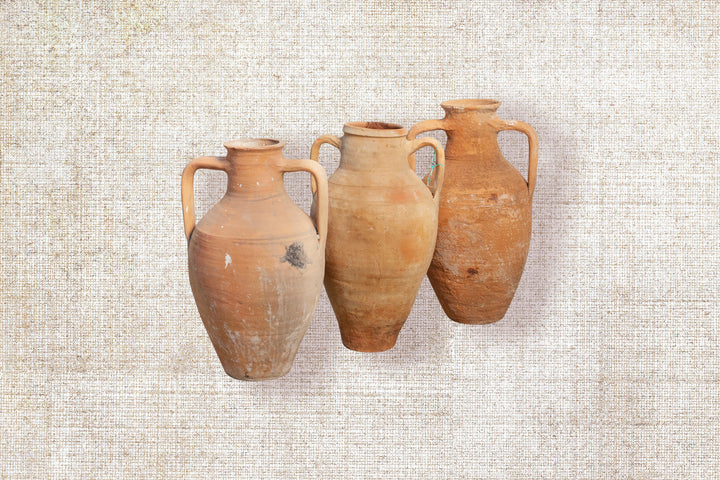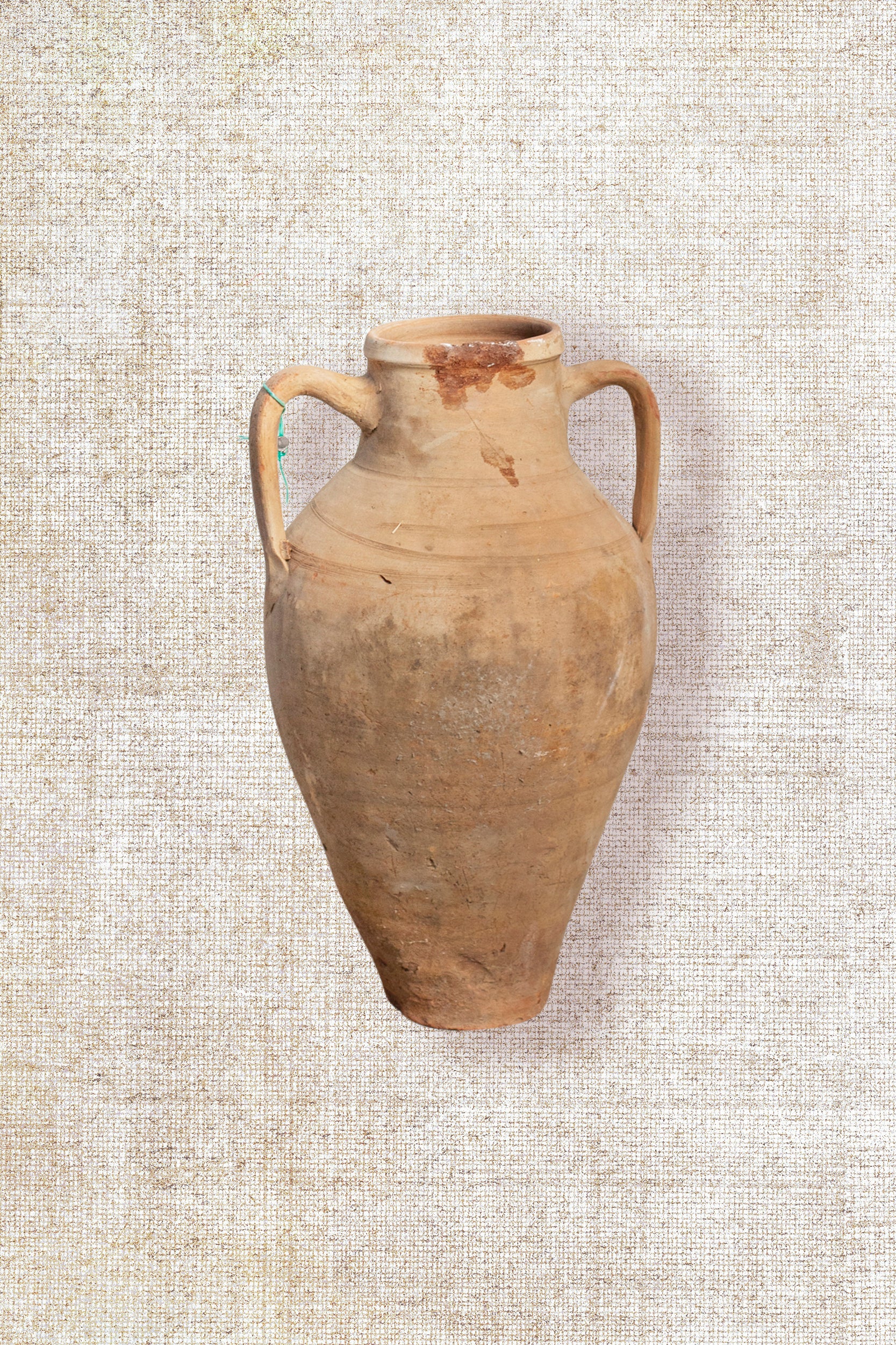 Once crafted for the purpose of storing olives, each piece boasts a unique character, having gracefully endured the passage of time. Celebrated as a stunning display item, style it by adding some stems or flowers and place it as a statement piece on a pedestal, entrance table, side cabinet or console table or position it as a focal point to bring life to your interior and soften the whole look and feel. This extraordinary object transforms any space into a gallery of history and artistry. Expect minor imperfections as a testament to its authenticity.