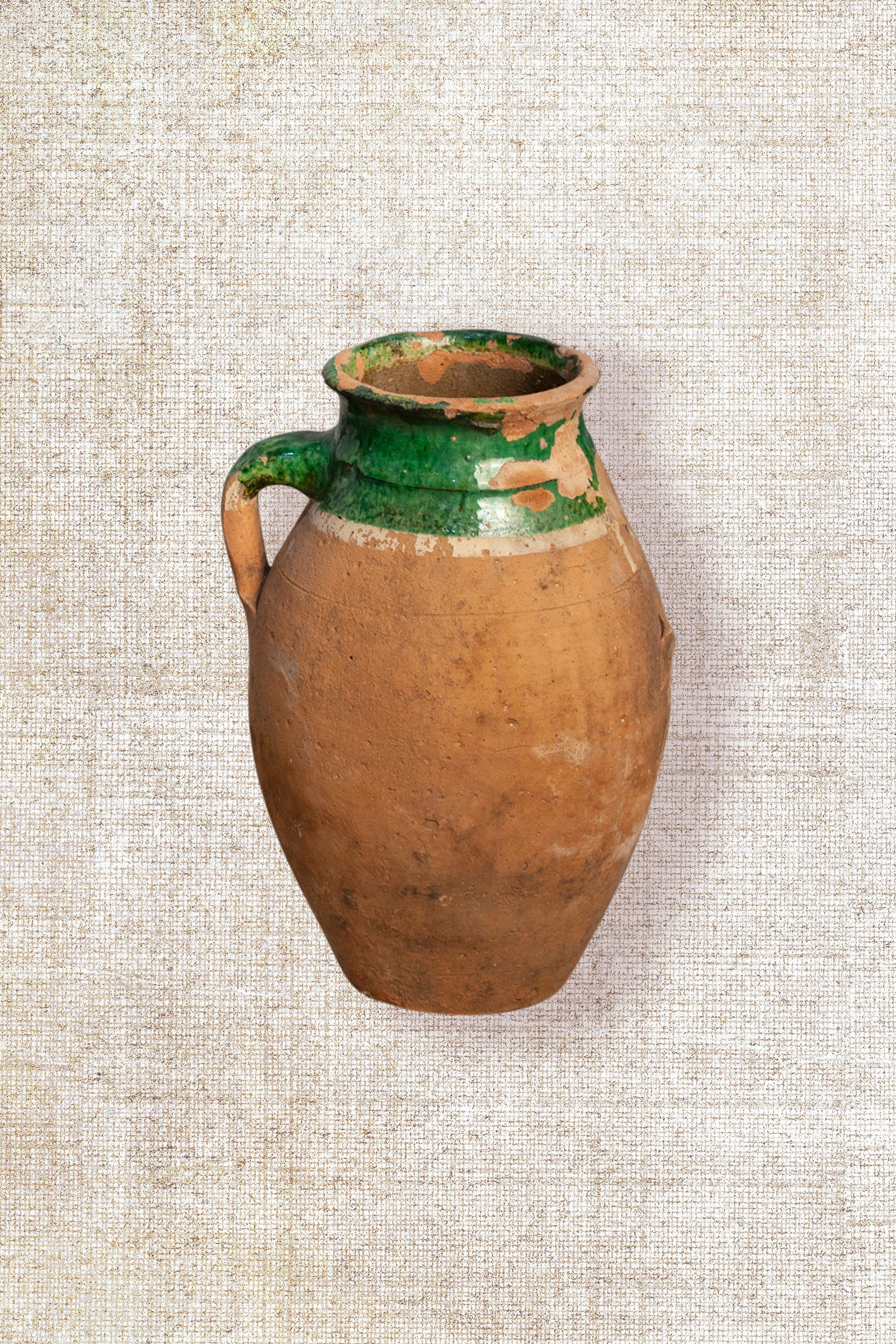 Initially intended for water storage, this one-of-a-kind vintage vase serves as a delightful decorative piece or container for dried branches and flowers. Expect minor imperfections and repairs.