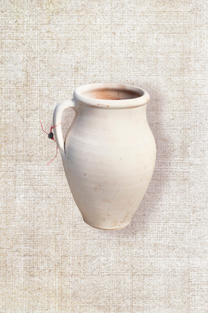 Initially intended for water storage, this classic vase serves as a delightful decorative piece or container for dried branches and flowers.