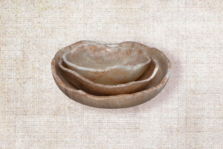 A true Rebellion launched in your space. The uneven lines and rough edges on these bowls make them hard to resist. Their different sizes determine their styling and use. They can be used as decorative objects, fruit/bread bowls.