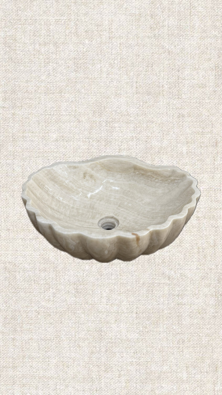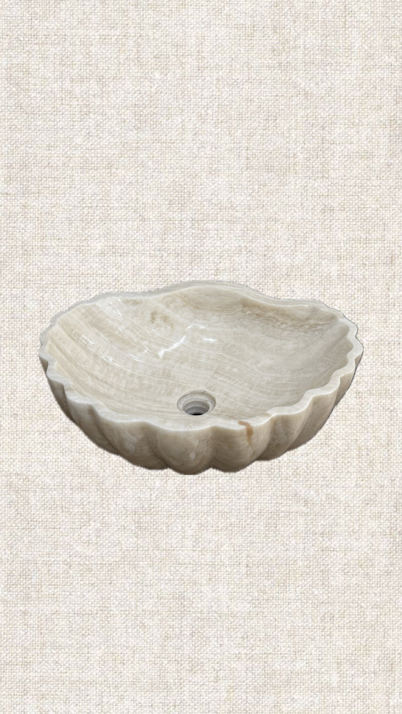 Our scalloped handmade onyx sinks from our Courbe collection embody timeless elegance. Crafted with precision to highlight the natural beauty of stone. Each piece showcases soft, flowing curves and rich variations in color and texture, turning a functional fixture into a statement of artistry. Elevated in design and detail, these sinks bring sophistication and warmth to any space, blending luxury with the uniqueness of hand-finished craftsmanship.