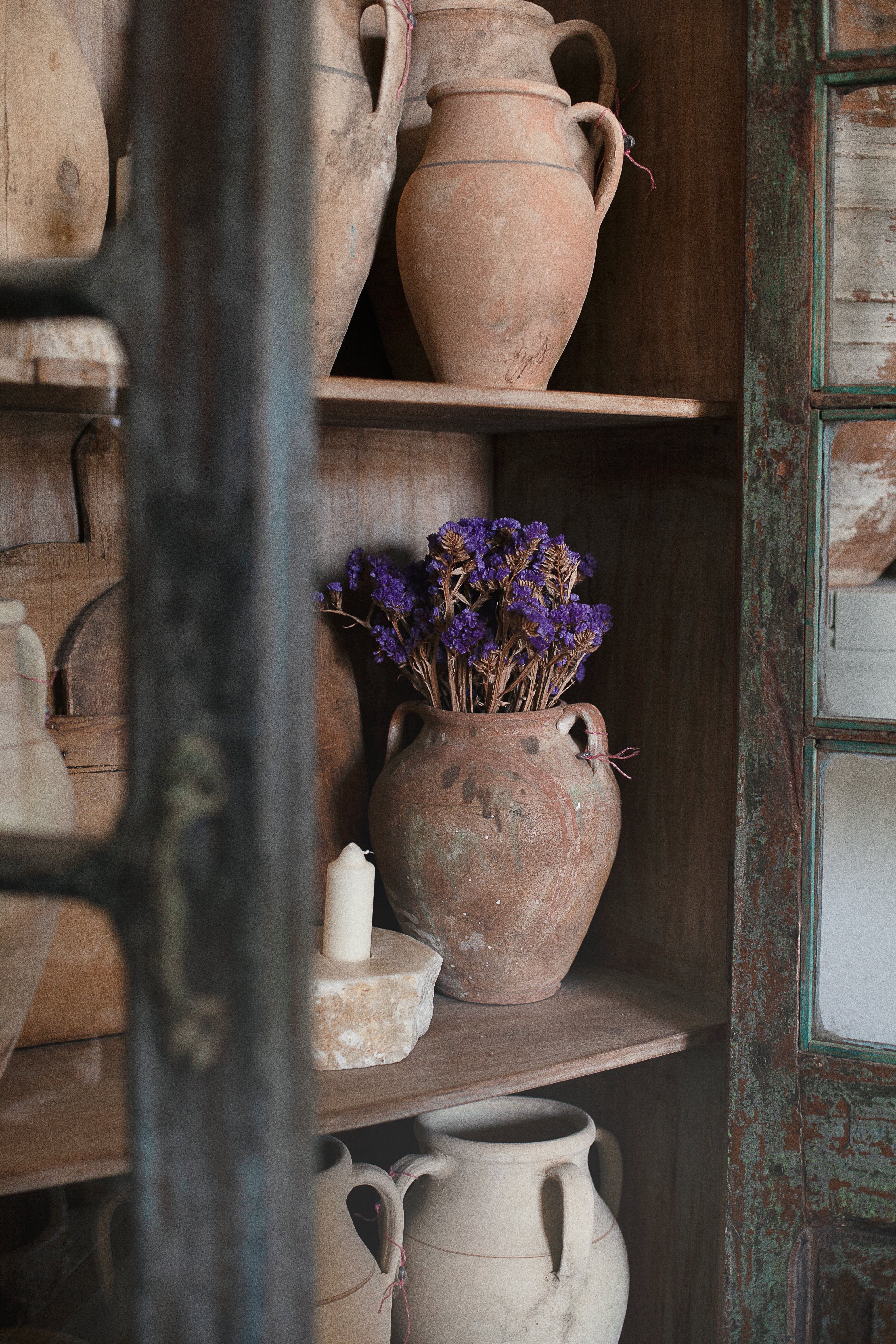 Initially intended for water storage, this three arms, earth toned Avanos vessel serves as a delightful decorative piece or container for dried branches and flowers. To each of these pots a particular patina. Anticipate subtle differences in color.