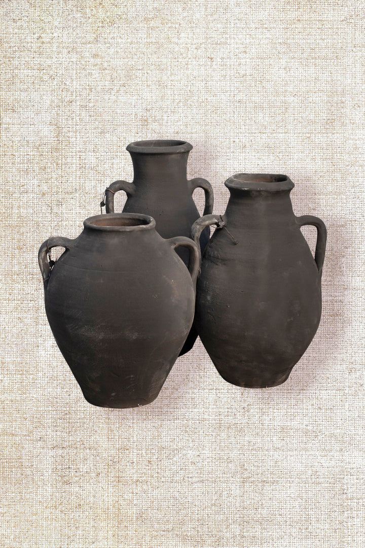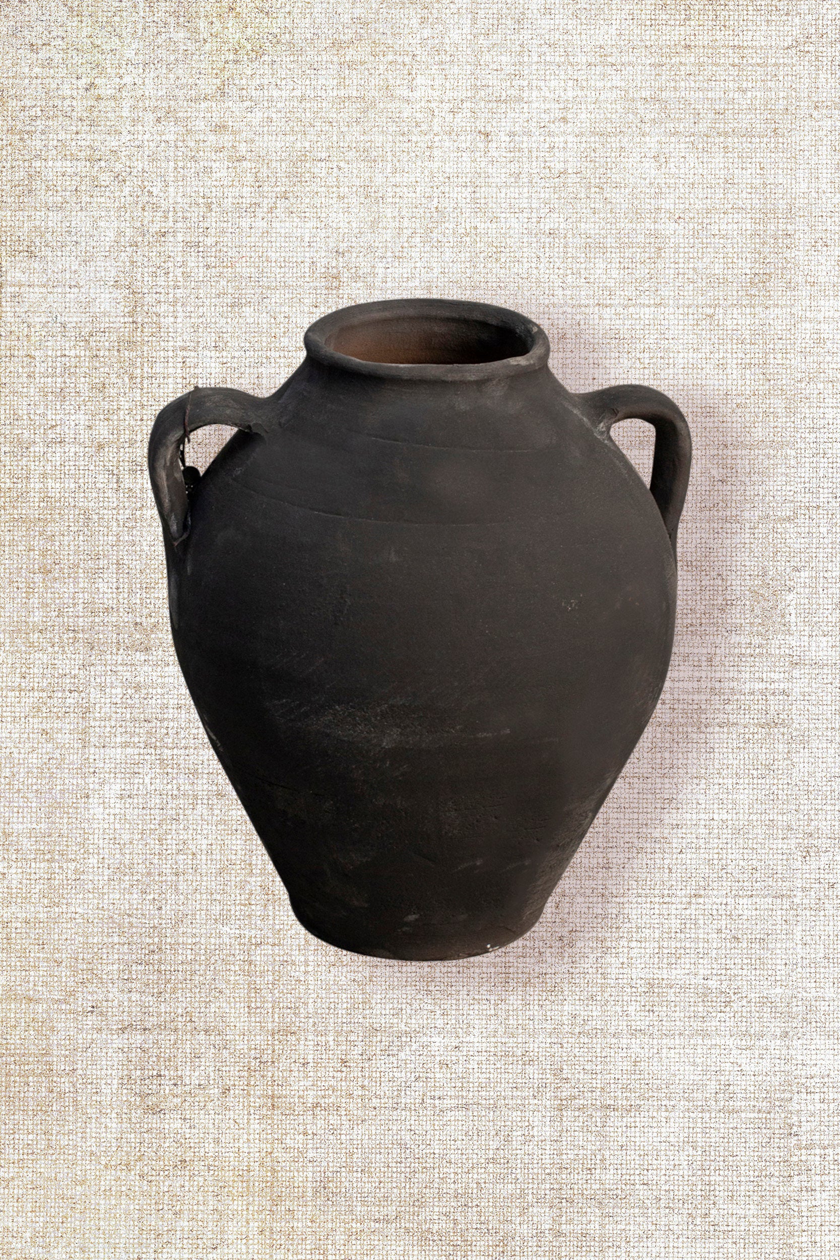 Initially intended for water storage, this classic black distressed vessel serves as a delightful decorative piece or container for dried branches and flowers.