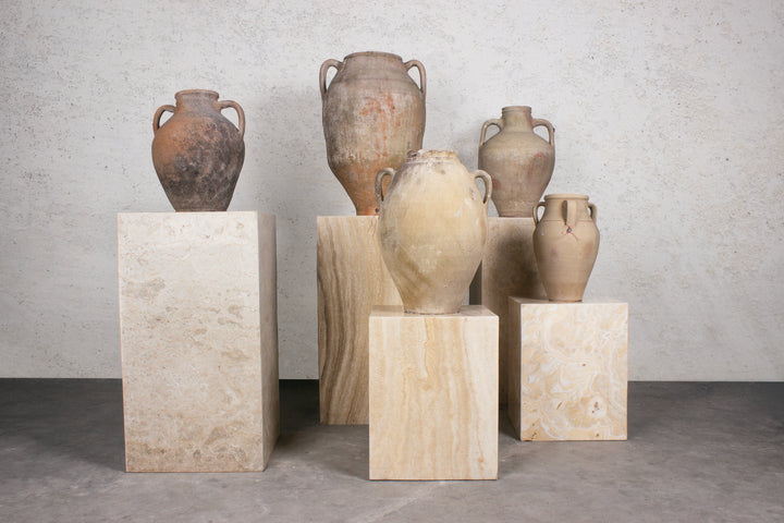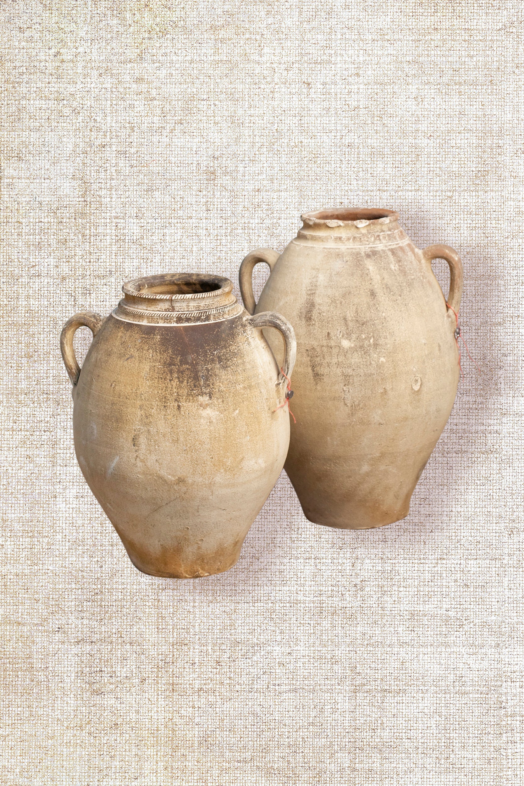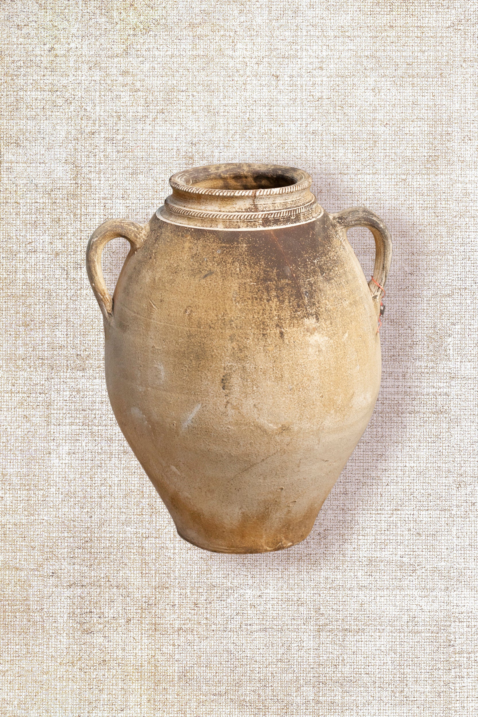 Initially intended for water storage, this two handles, country style pot serves as a delightful decorative piece or container for dried branches and flowers. To each of these pots a particular patina. Anticipate subtle differences in color.
