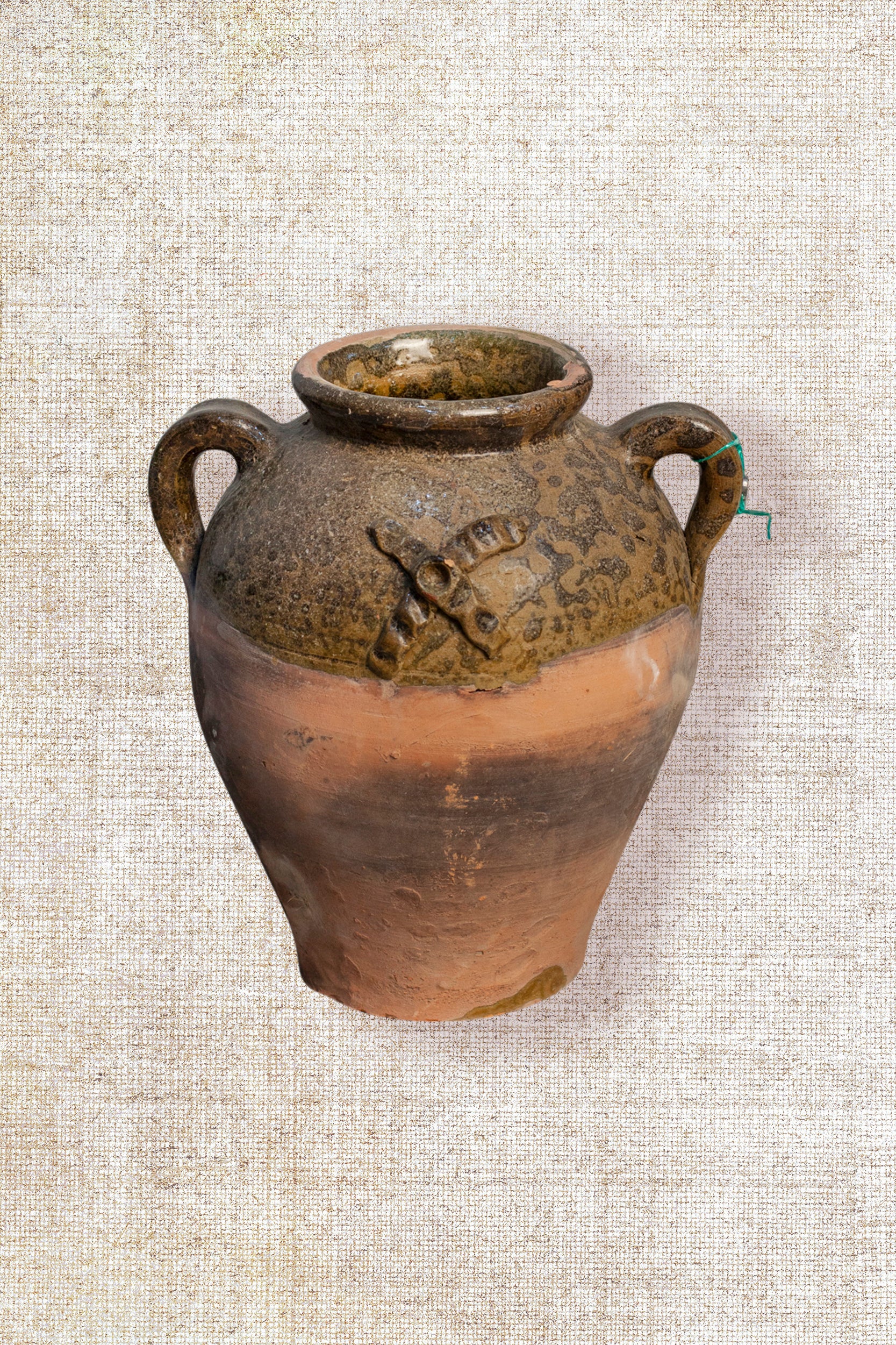 Initially intended for water storage, this classic vessel serves as a delightful decorative piece or container for dried branches and flowers.