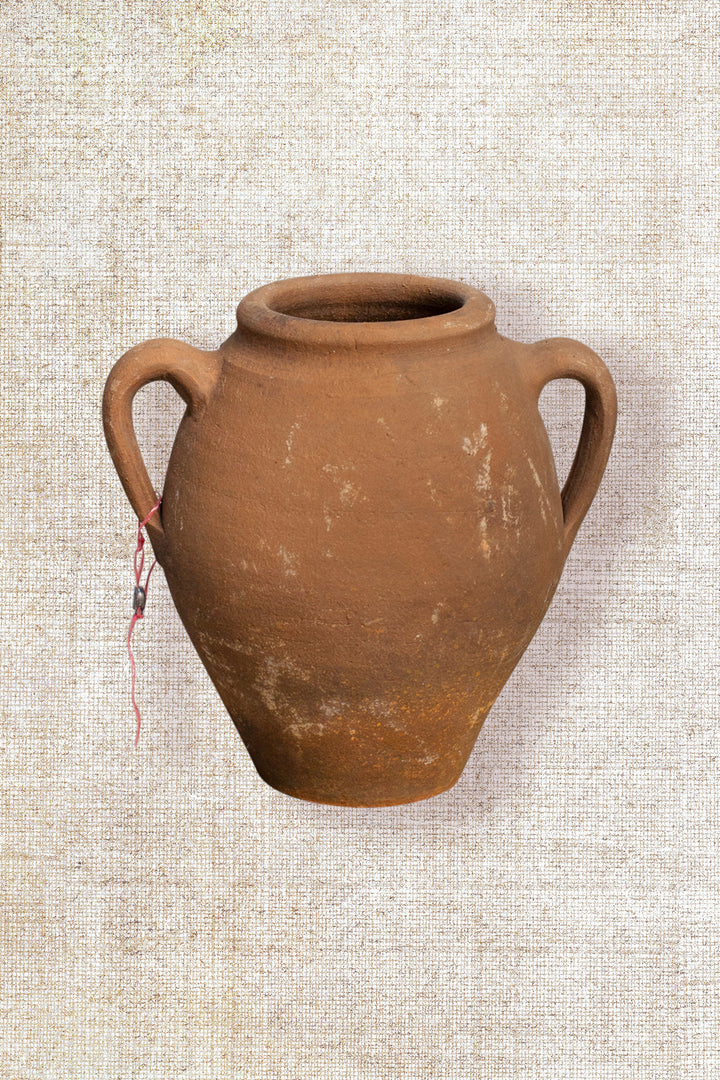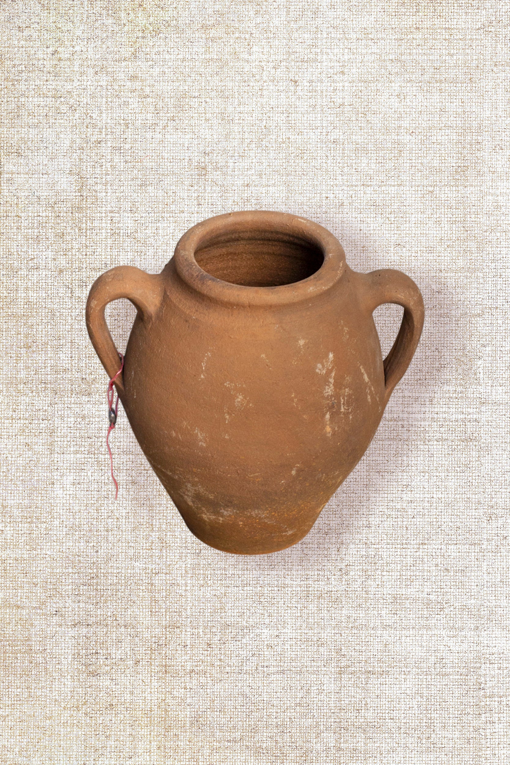 Initially intended for water storage, this organic brown vase, serves as a delightful decorative piece or container for dried branches and flowers.