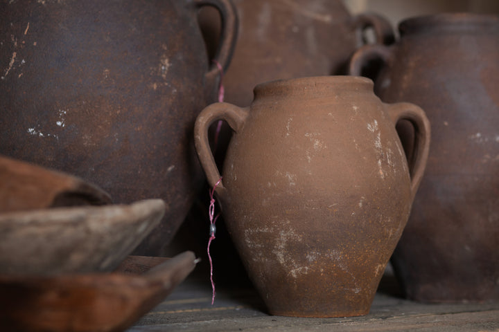 Initially intended for water storage, this organic brown vase, serves as a delightful decorative piece or container for dried branches and flowers. To each of these pots a particular patina. Anticipate subtle differences in color.