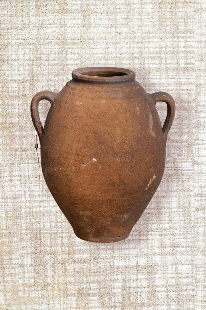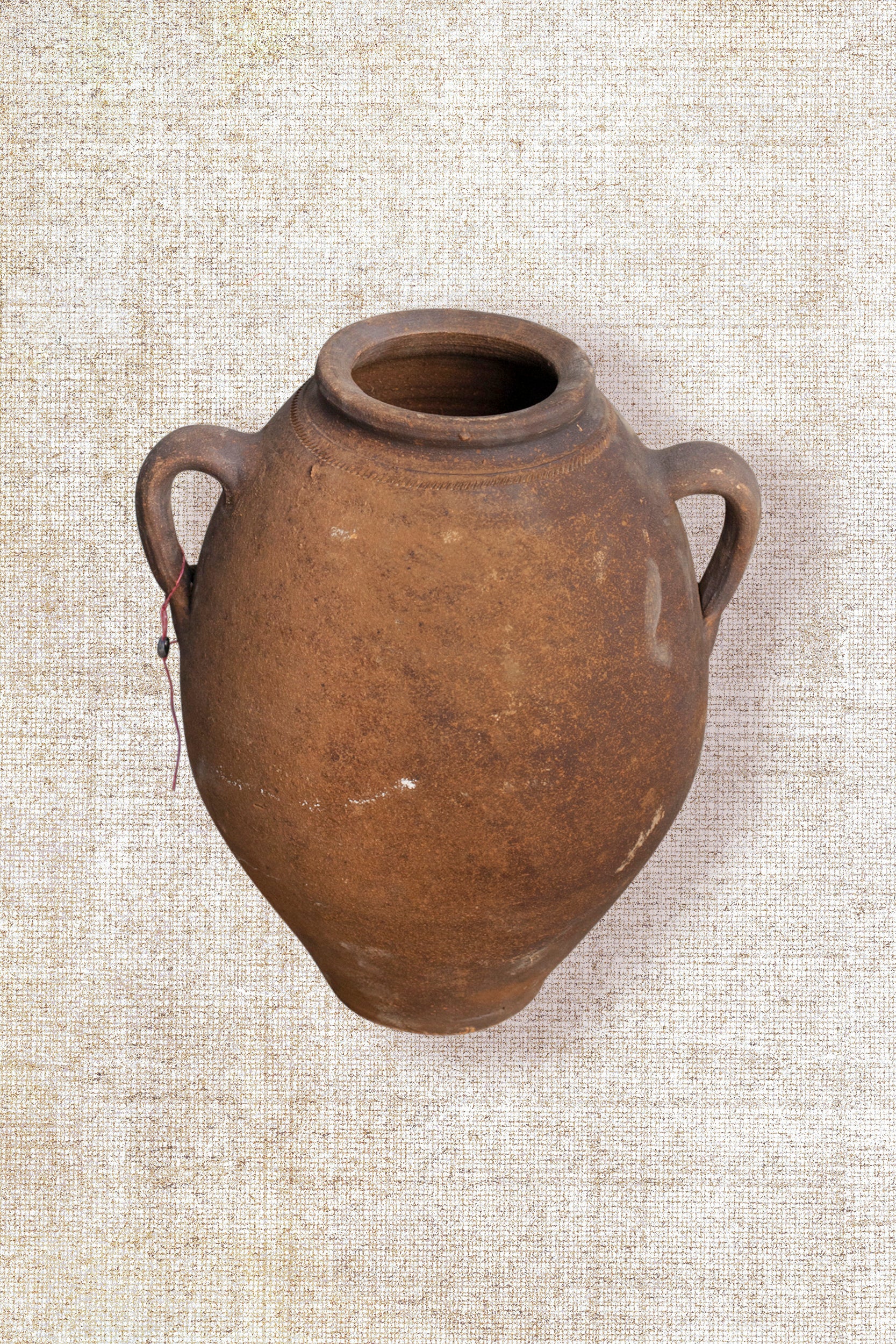 Initially intended for water storage, this rustic brown vessel, serves as a delightful decorative piece or container for dried branches and flowers. To each of these pots a particular patina. Anticipate subtle differences in color.