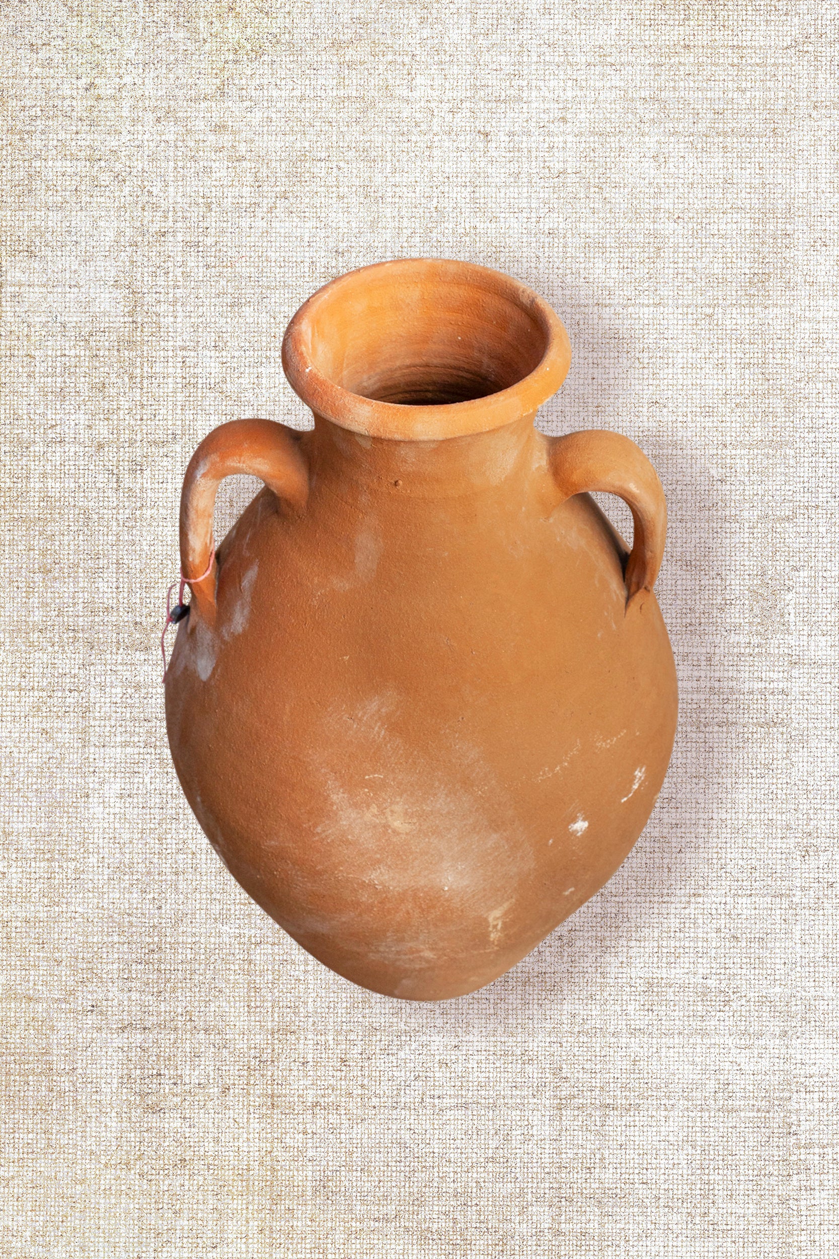 Initially intended for water storage, this classic terracotta pot serves as a delightful decorative piece or container for dried branches and flowers.