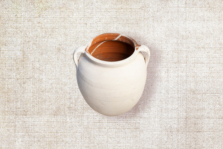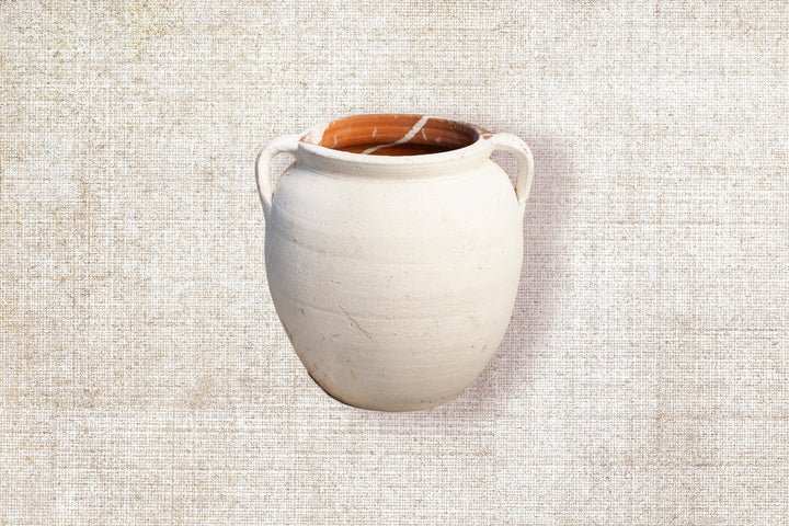 Initially intended for water storage, this classic white distressed vessel serves as a delightful decorative piece or container for dried branches and flowers.