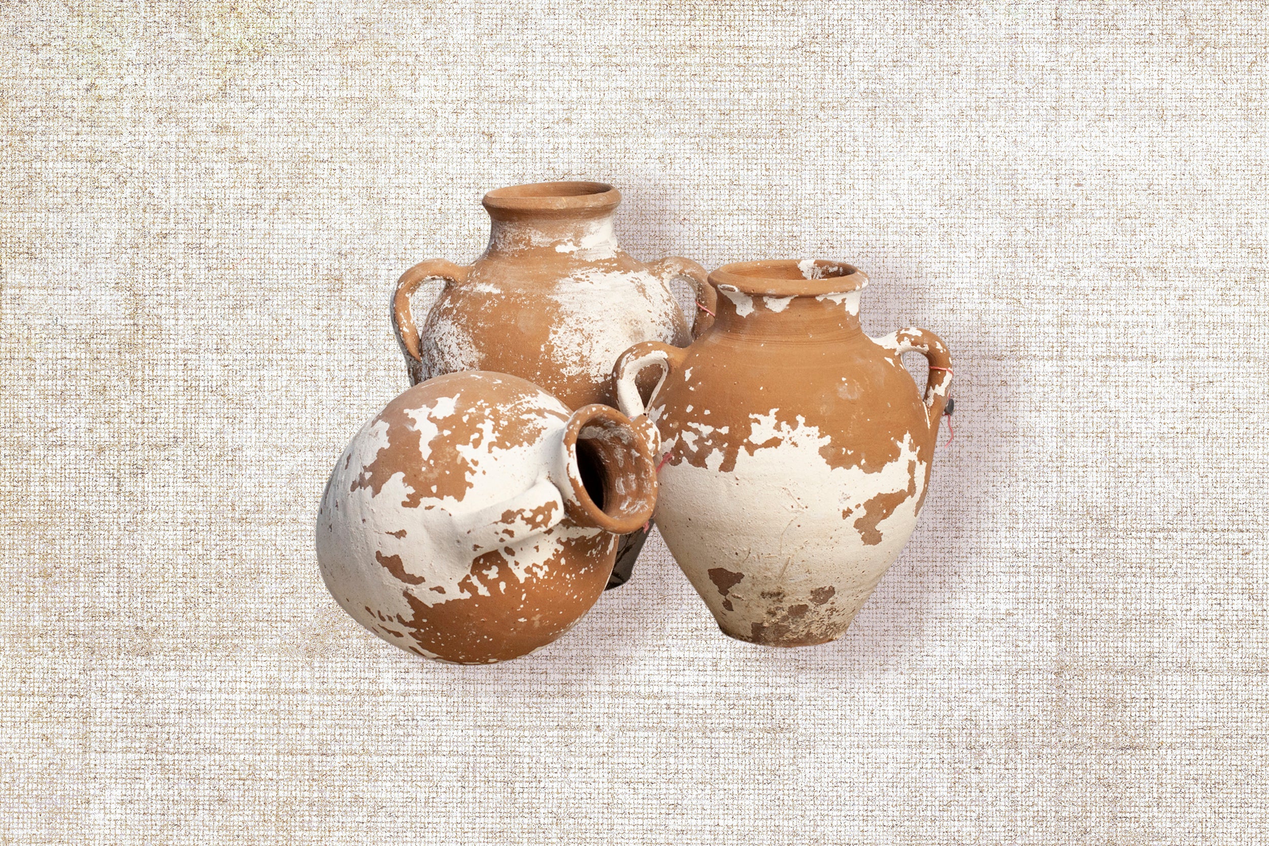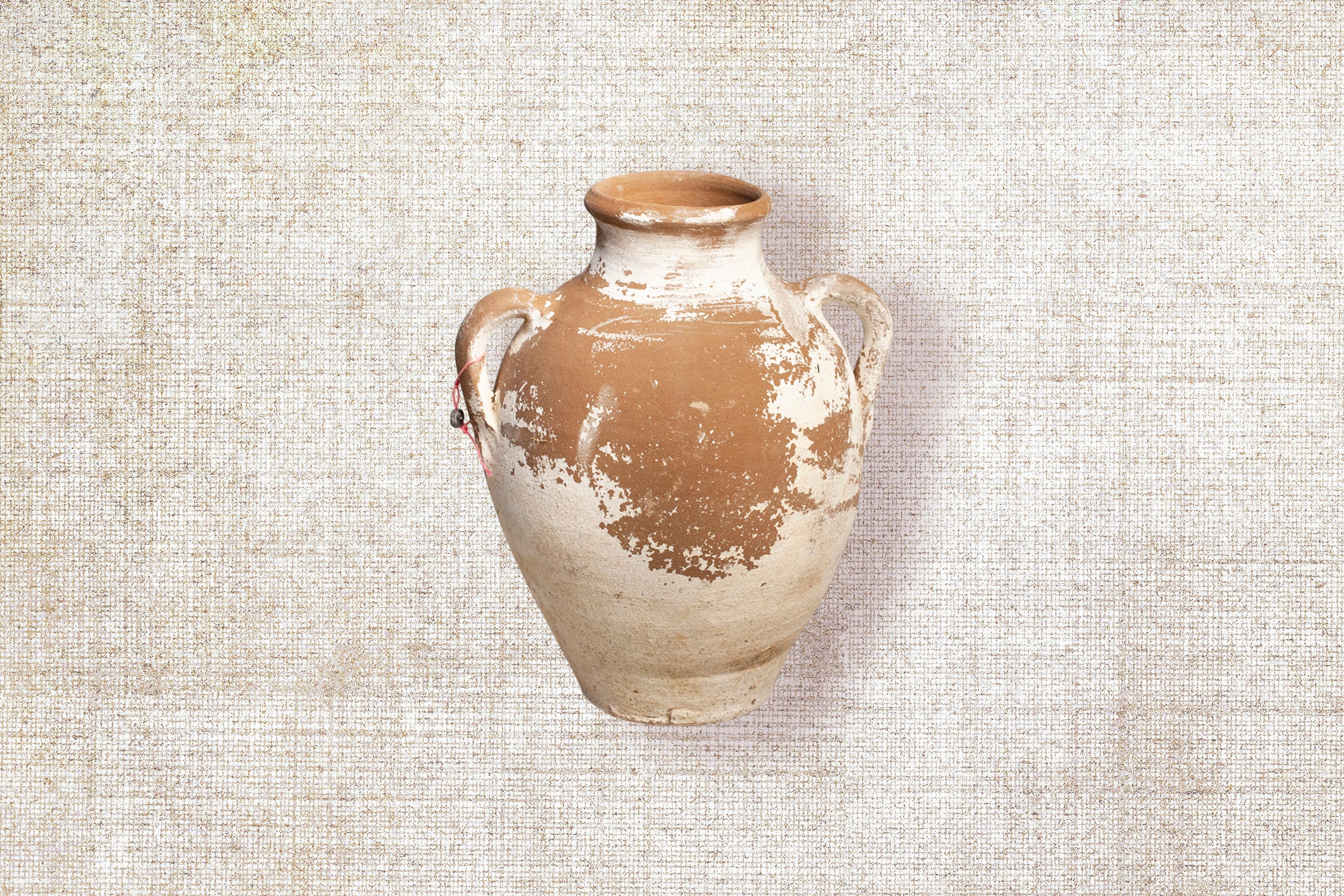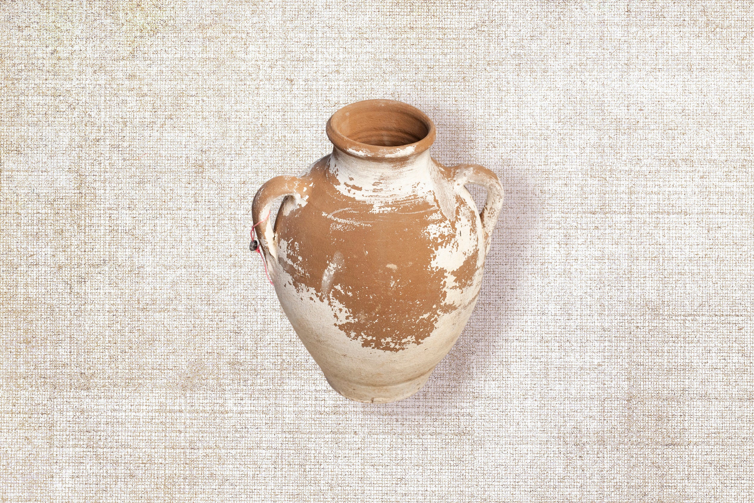Initially intended for water storage, this classic whitewashed terracotta vessel serves as a delightful decorative piece or container for dried branches and flowers.