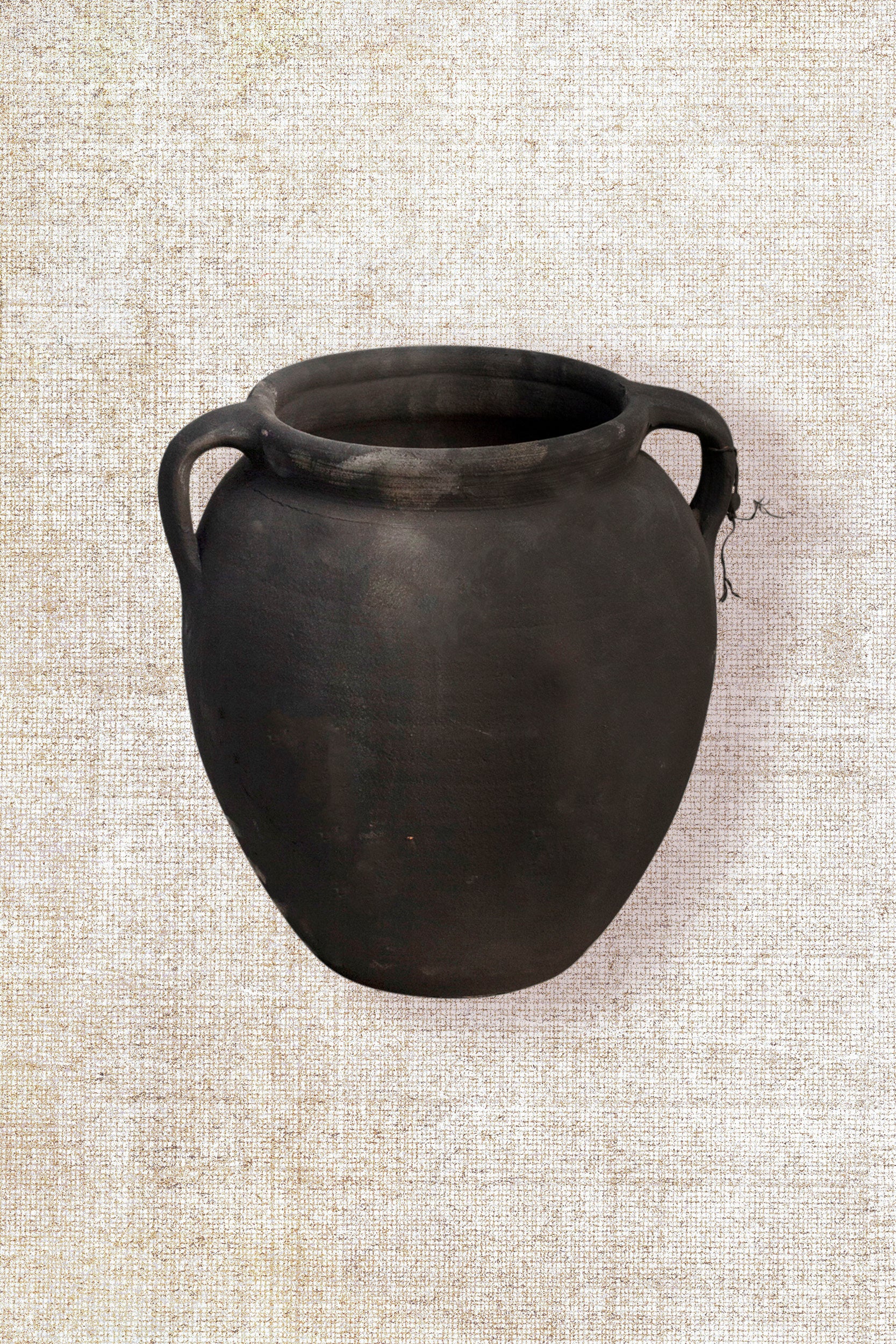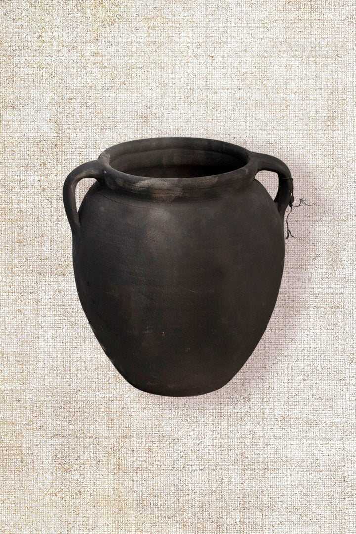 Initially intended for water storage, this classic black distressed vessel serves as a delightful decorative piece or container for dried branches and flowers.