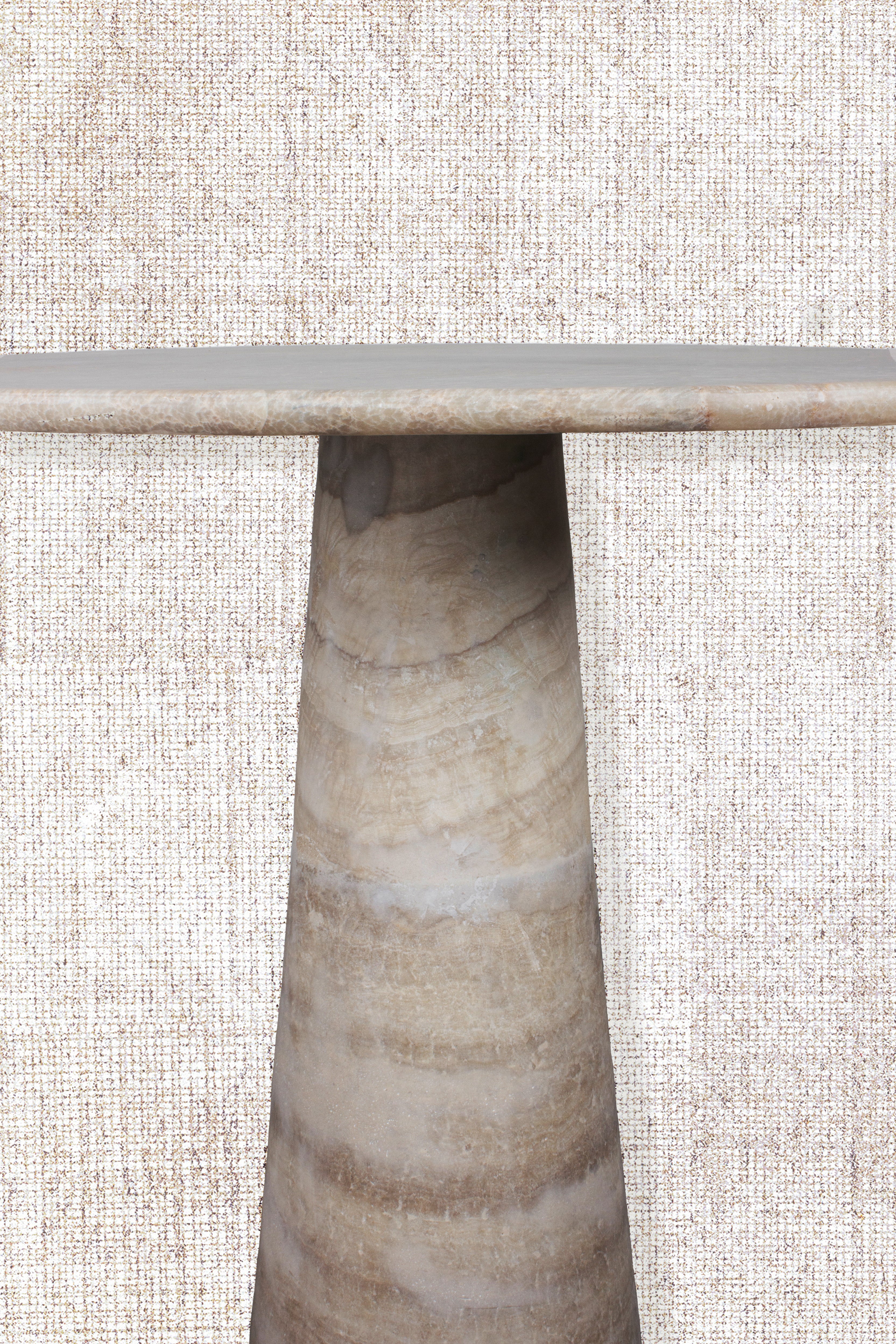 From our Classico collection: Minimal design and distinctive translucency. This table showcases the unique features of Onyx. Best used as an entrance or corner table. Style it with an Antique or Vintage pot with dramatic florals. It is a showstopper with high versatility & different use. This table is handcrafted, ensuring that each piece is one-of-a-kind.