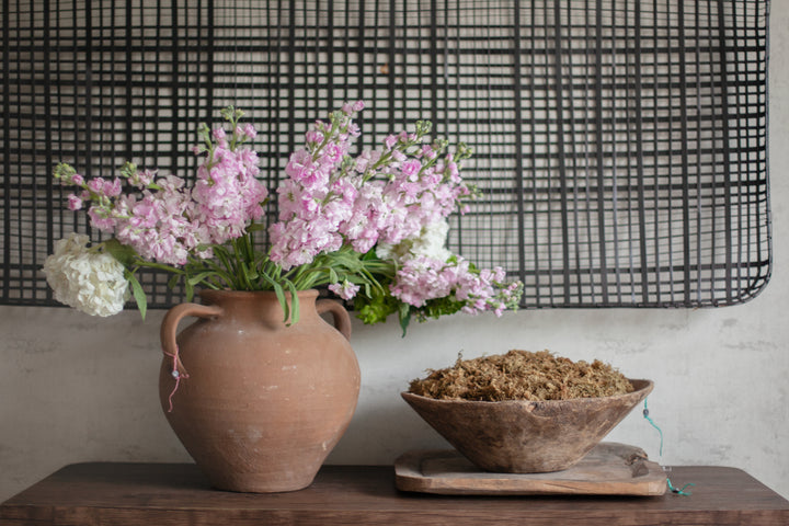 Dough bowls, traditionally used in the preparation of bread, were once essential tools for kneading, rising, and resting dough. These vintage pieces were typically crafted from wood and were prized for their ability to provide a warm environment for dough to rise. Today, they serve as charming antiques and decorative objects. Bring a cozy, inviting touch to your kitchen counter or dining table by pairing this piece with citrus fruits for a natural and stylish display.