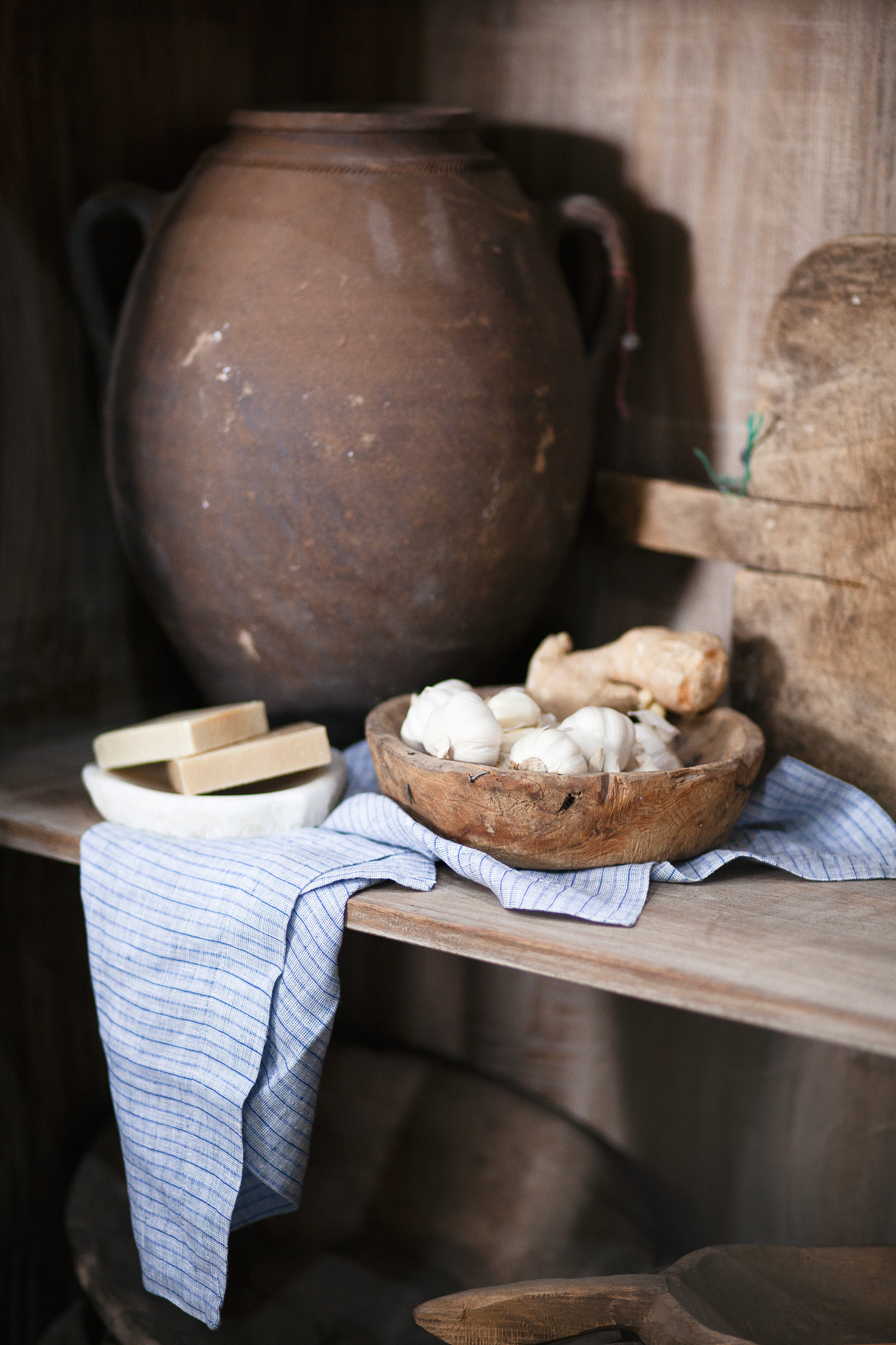 Dough bowls, traditionally used in the preparation of bread, were once essential tools for kneading, rising, and resting dough. These vintage pieces were typically crafted from wood and were prized for their ability to provide a warm environment for dough to rise. Today, they serve as charming antiques and decorative objects. Bring a cozy, inviting touch to your kitchen counter or dining table by pairing this piece with citrus fruits for a natural and stylish display.