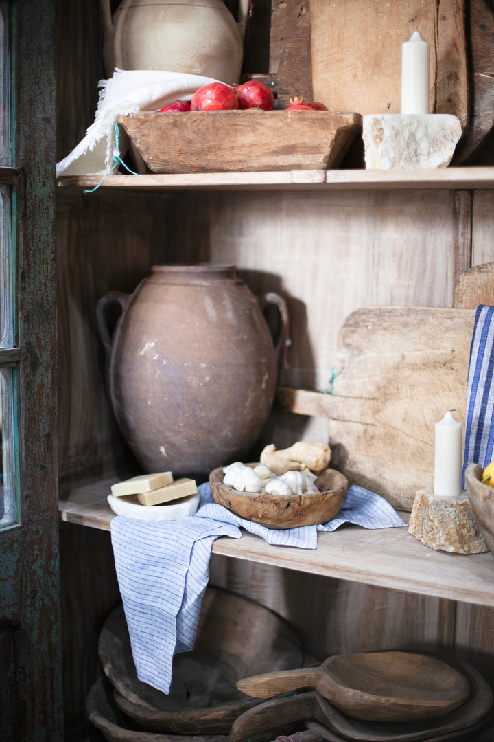 Dough bowls, traditionally used in the preparation of bread, were once essential tools for kneading, rising, and resting dough. These vintage pieces were typically crafted from wood and were prized for their ability to provide a warm environment for dough to rise. Today, they serve as charming antiques and decorative objects. Bring a cozy, inviting touch to your kitchen counter or dining table by pairing this piece with citrus fruits for a natural and stylish display.